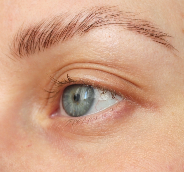 Когда я получила тени, пошла сразу их тестить на веке. Без какой либо подготовки, тыкнула кистью и перенесла на кожу.