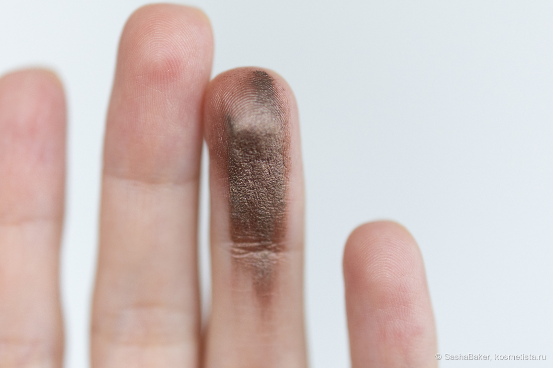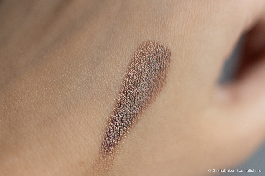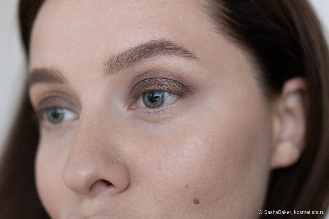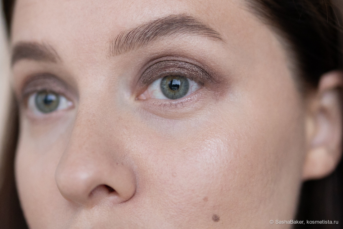 Оттенок. Как часто бывает, на свотчах официального сайта как будто бы немного другой оттенок, я ждала больше лиловости, таупа. По фотографиям да, но по названию оттенка вышло у бренда точней- это и правда шоколад с бронзой. Оттенок передается плотно, но слишком быстро схватывается на веке, поэтому легкой тушевки не получается, а ведь обещали. Смотрим дальше.