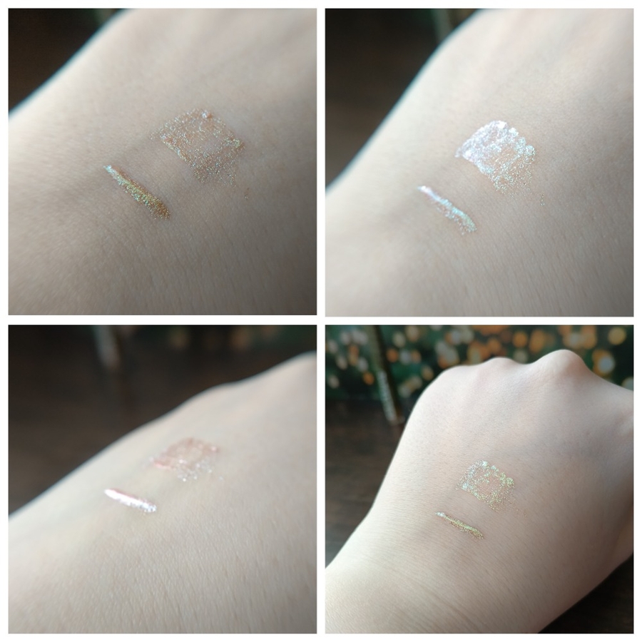Хотя в оттенке заявлены зеленый и коричневый цвета, мне кажется, что в мультихроме их больше. Я постаралась заснять все оттенки, которые я вижу в этой подводке. Кстати в ней еще довольно большое количество отдельных мелких блесток.