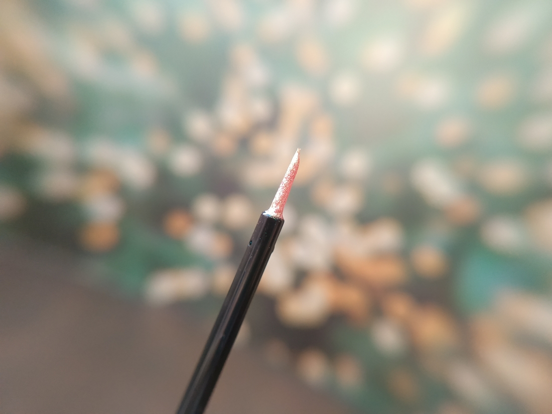 Кисть удобная, очень тоненькая, правильной длины. Рисовать ею вполне просто, ее легко контролировать, она не расползается, волоски не торчат, набирает достаточное количество продукта.