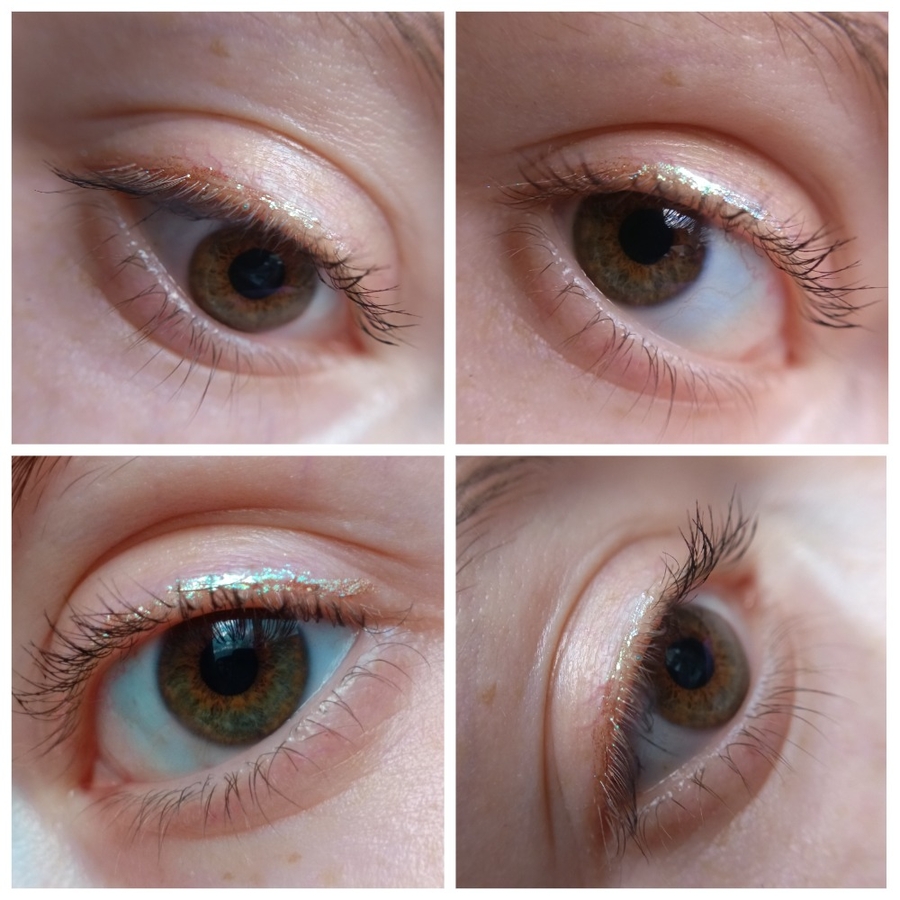 Подводка смотрится так естественно и аккуратно, что я влюбилась в нее с первого применения. Небольшое сияние появляется и исчезает от поворота головы или взмаха ресниц. Это не выглядит, как будто я на бразильском карнавале, я готова пойти так куда угодно, лицо выглядит уместно при полном отсутствии макияжа, как я и хожу большую часть времени.