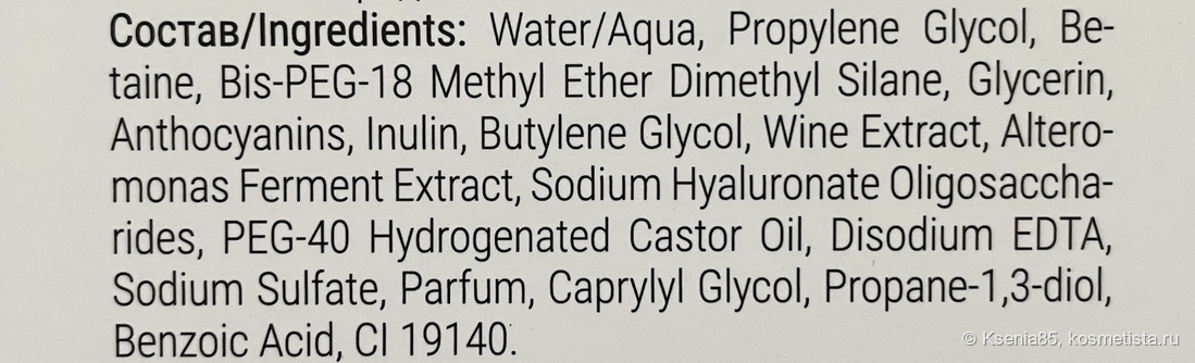 Активные ингредиенты: экстракт вина, олигомеры гиалуроновой кислоты, пребиотик инулин.