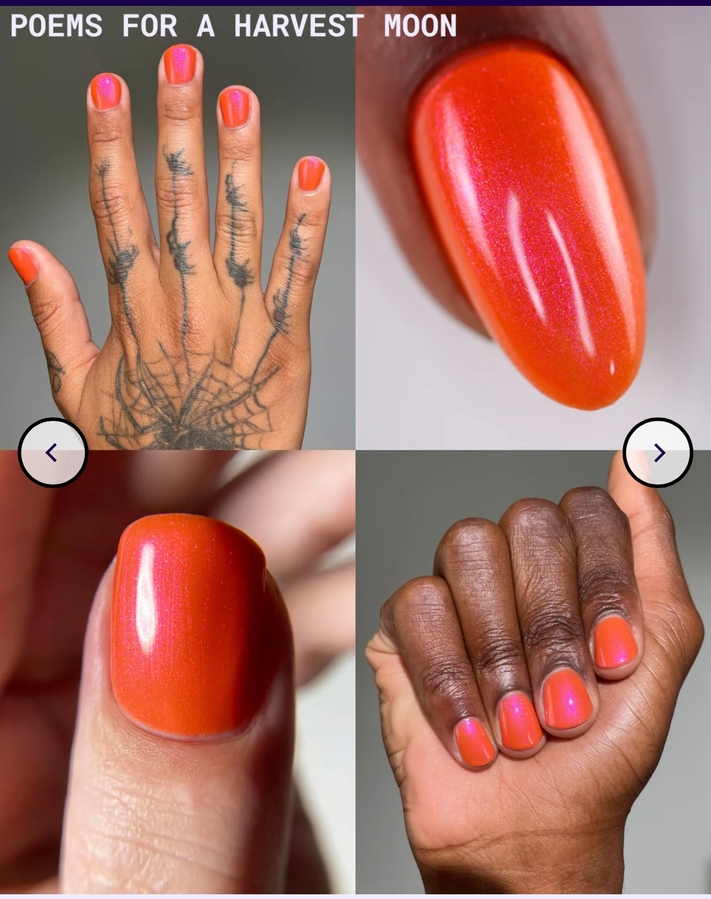 Хороший лак, но нет в нем изюминки, которая выделяла бы его из коллекции. Видимо уже наступил тот порог, когда от лака ждешь большего, чем только удачного нанесения, длительной носки, палитры. Особенно это проявляется, когда уже есть экземпляры на голову выше по эффекту и общему впечатлению. С Poems for a Harvest moon произошел тот случай, когда на промо оттенок выглядит круче, чем вживую 🎃👻👻