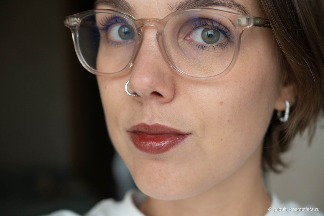 Как только блеск был нанесен, губы выглядят слегка влажными и ухоженными. Примерно через час глянец уходит, и остаётся аккуратный полуматовый тинт.