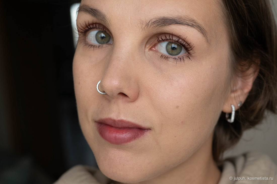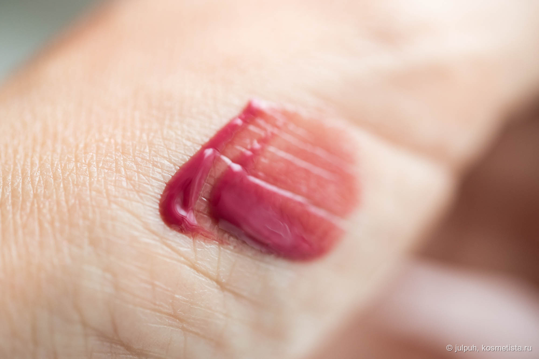 Тинт дает легкий глянец, который длится недолго. Через полчаса блеск уходит и губы выглядят мягко и полуматово.