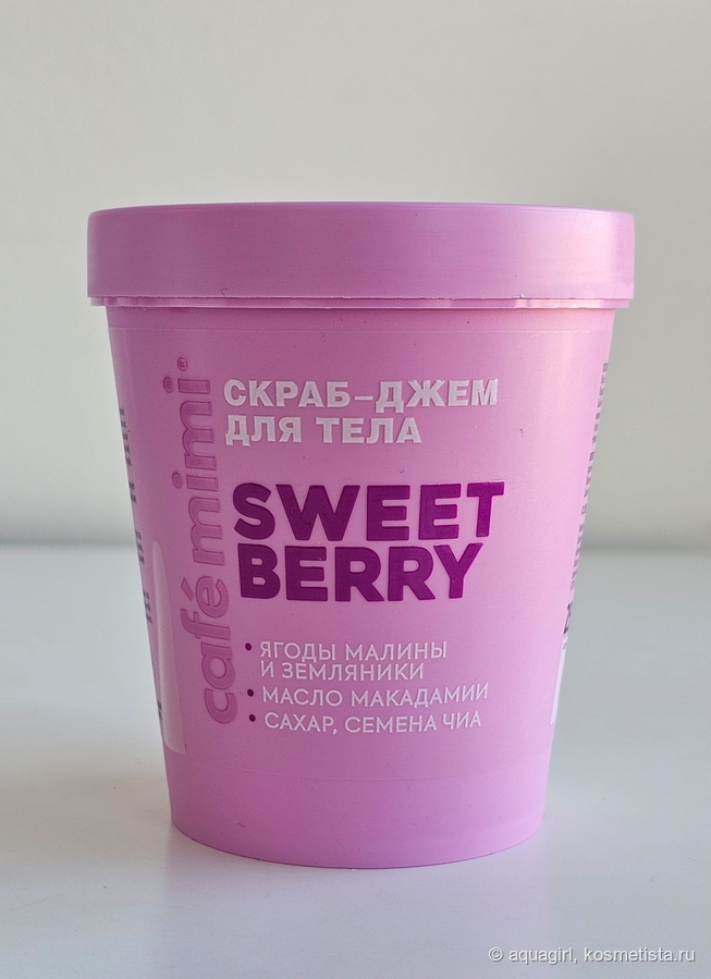 Интересная текстура, ягодное желе со вкусным и почти не химозным запахом малины и земляники. За скрабирование отвечают частички сахара и единичные семена чиа.
