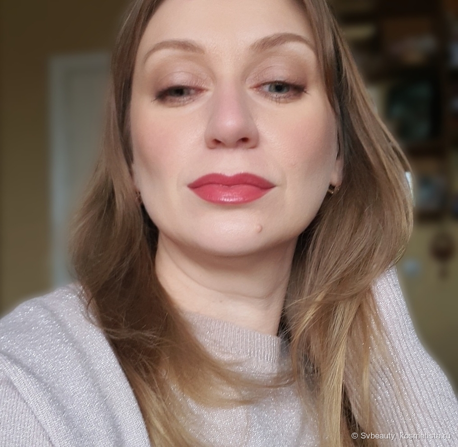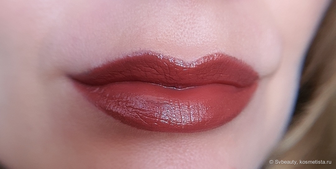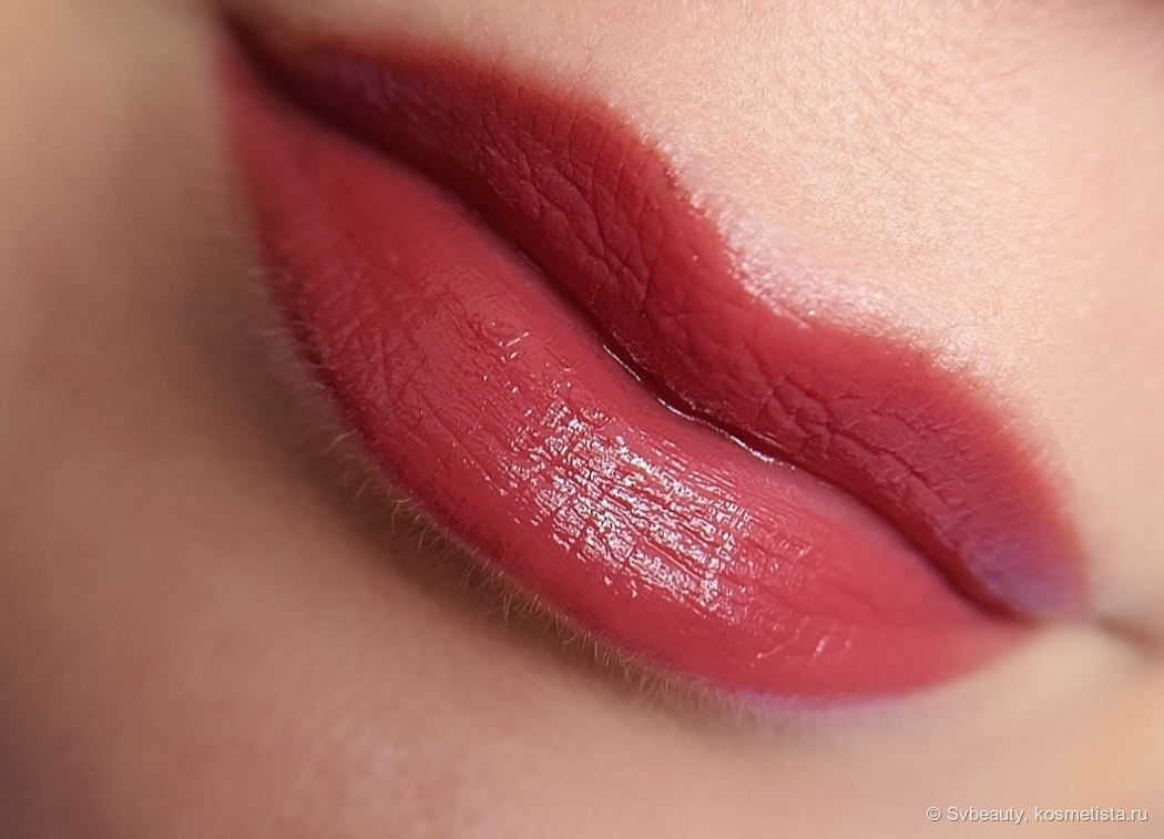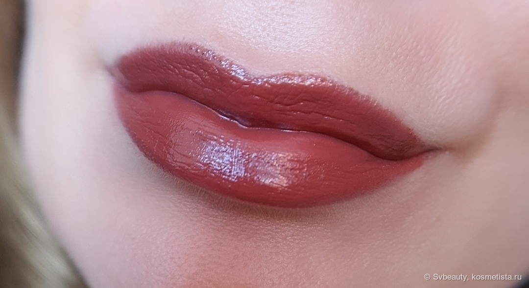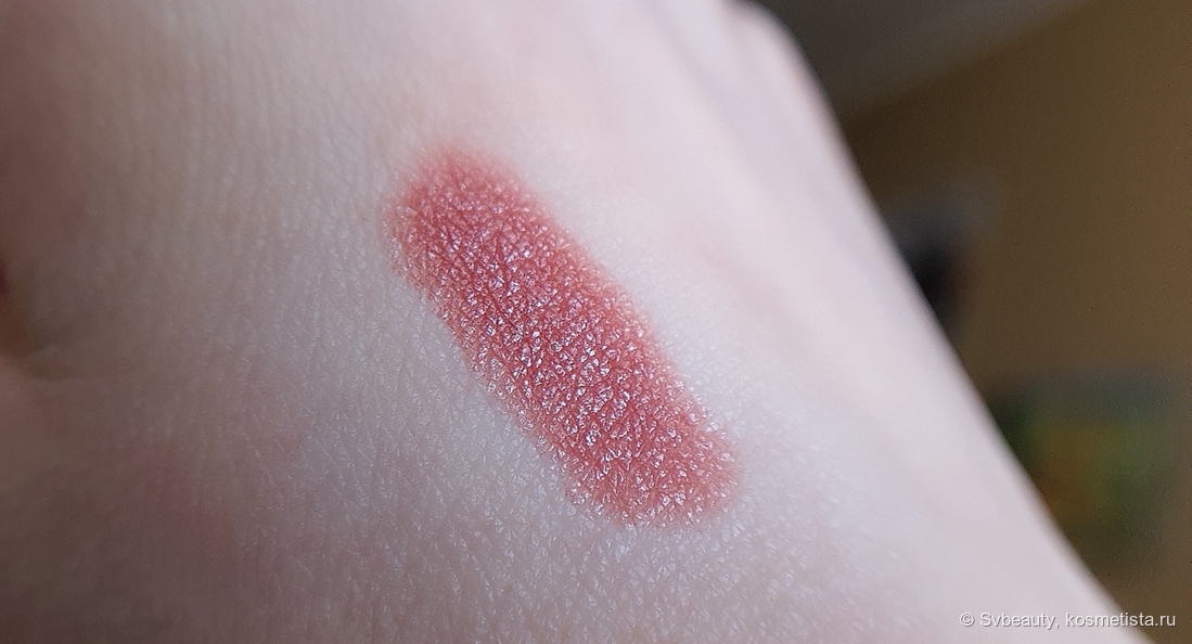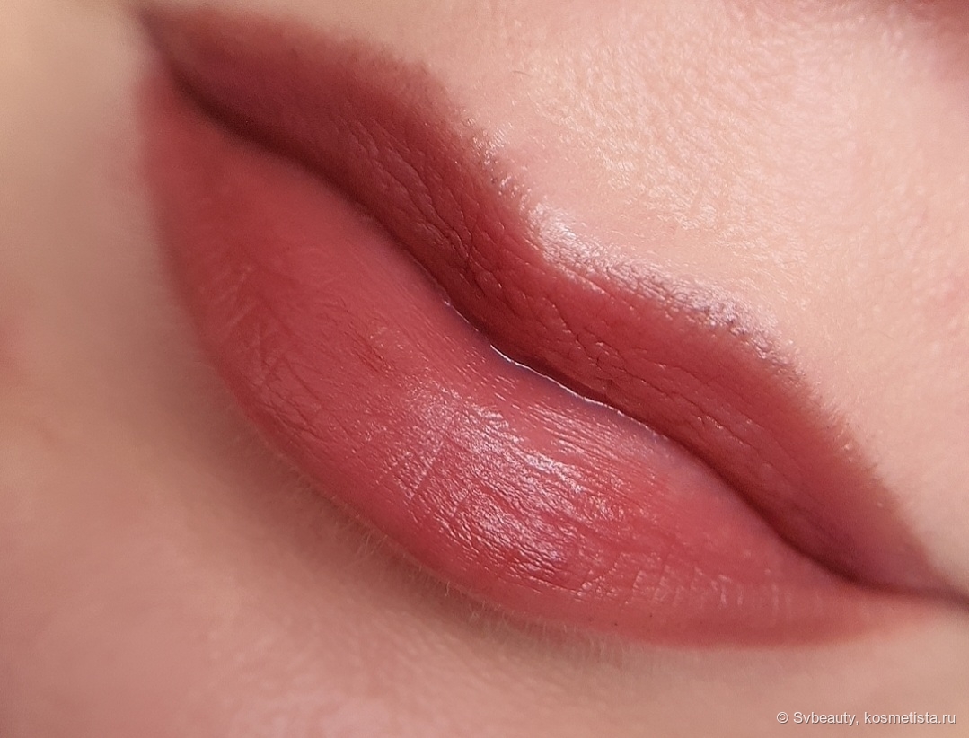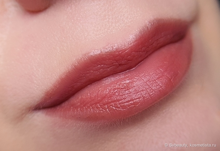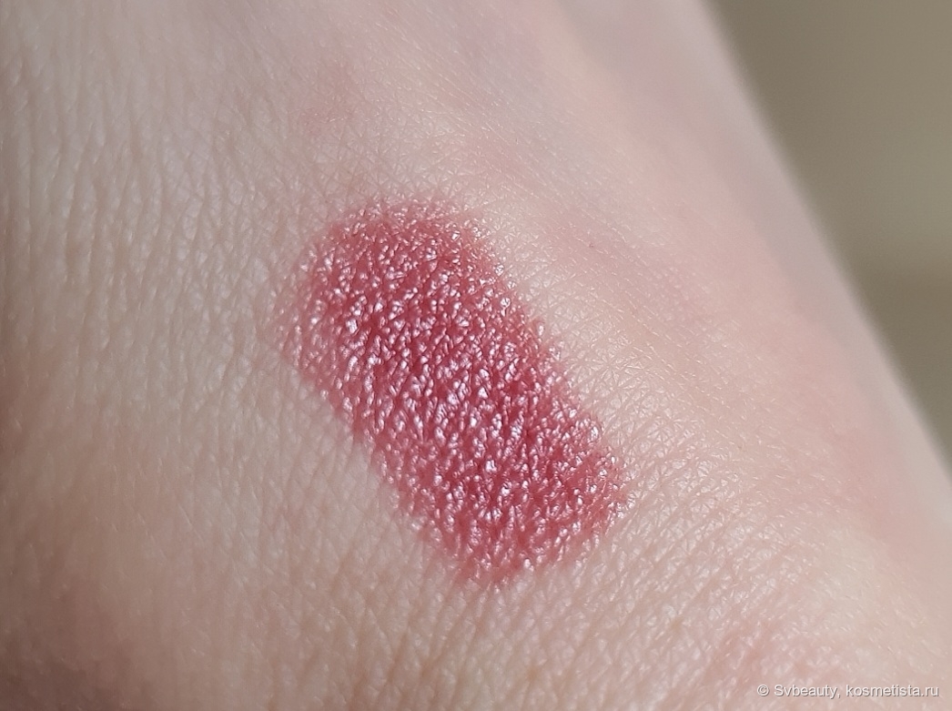Цвет близок к оттенку натуральных губ. Но он насыщеннее и ярче, чем натуральные губы, если наносить помаду плотным слоем из стика.
