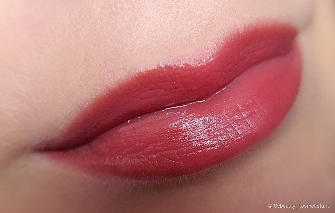 Я знала, что из стика помада ложится насыщенно, перекрывая природный цвет губ. Однако надеялась, что в более светлых оттенках помада будет менее насыщенной и темной. Но нет, при нанесении из стика получается яркий, глубокий и насыщенный цвет с сияющим финишем.
