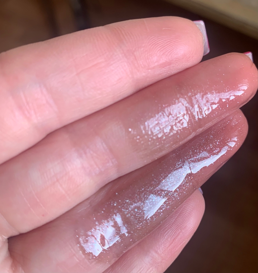Текстура блеска: плотная, но не тяжелая, очень гладкая, не сушит ни в процессе, ни после применения. Можно нанести тонким сломаем. Можно наслаивать продукт до 2 нанесений, далее начинает растекаться. Глянец шикарный, зеркальный, можно поймать отражение.
