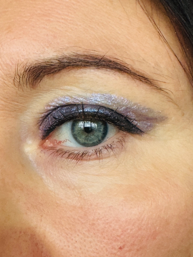 Кстати, как вариант — можно использовать их в качестве подводки. Конечно, мой светло-фиолетовый цвет не слишком хорошо для этого подходит, а вот если взять какой-то более темный или яркий оттенок, будет хорошо мне кажется.