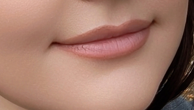 Можно подумать, что в ненатуральности виноват слишком яркий цвет помады, но такие эффекты я видела и в более бежевых, персиковых тонах. Так что светлая — ещё не значит нюдовая, особенно если в ней много перламутра или металла.