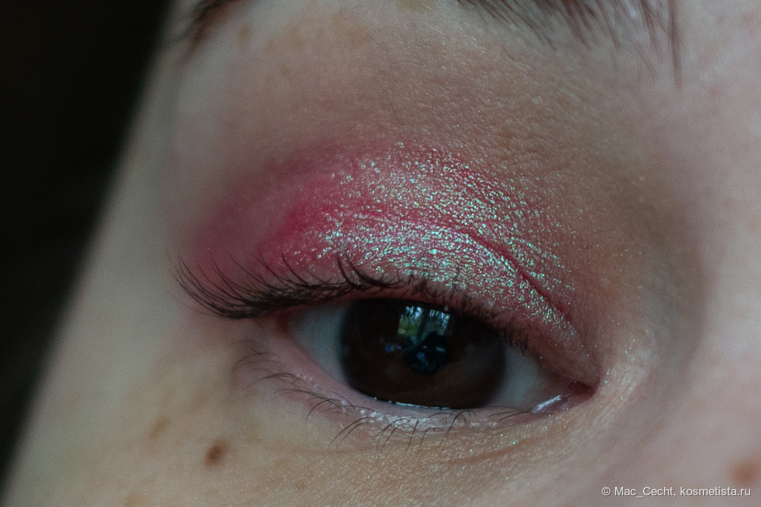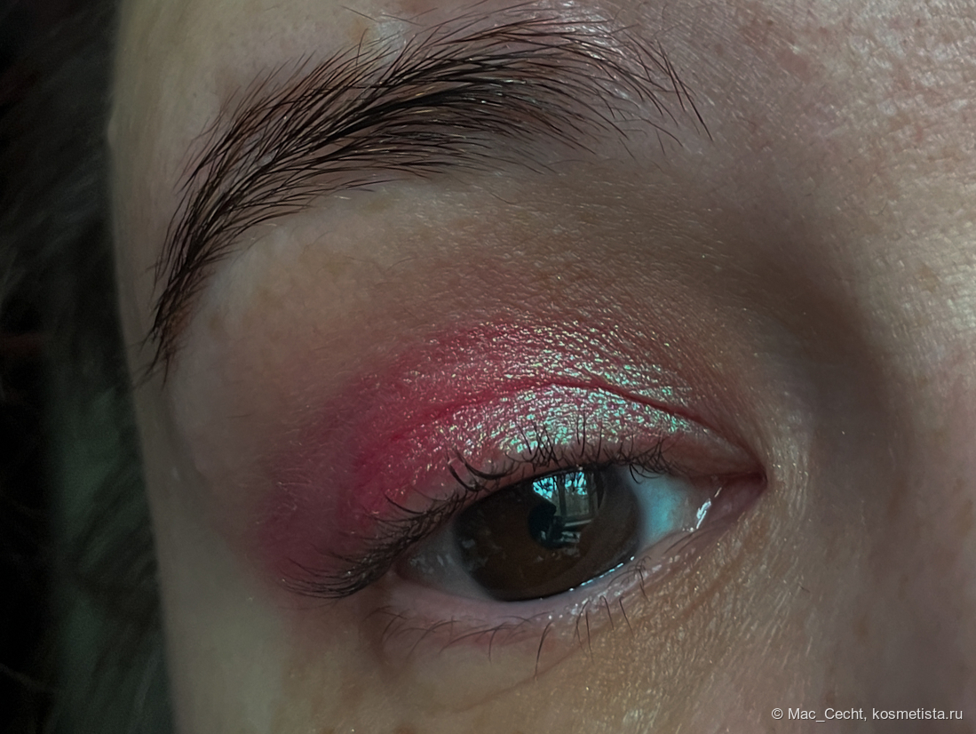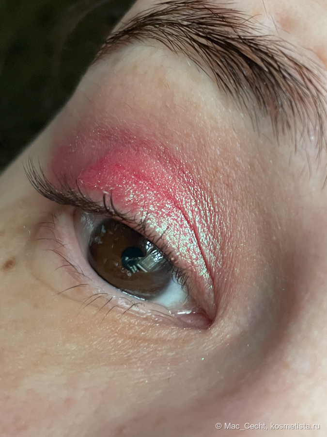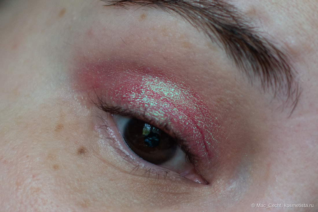 Есть только один нюанс: т.к. это дуохром, в самой складке и на выпуклой части века цвет выглядит по-разному)) Первые разы мне казалось, что это скатывание, но нет, покрытие было целым.