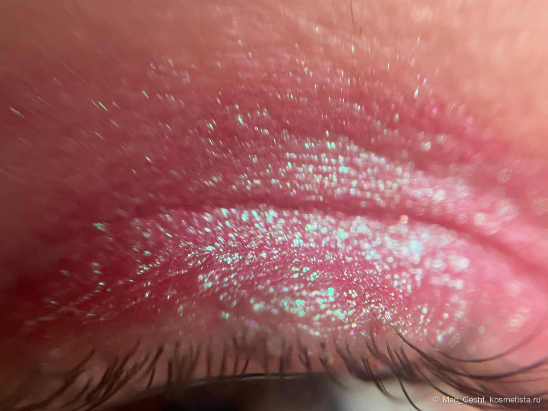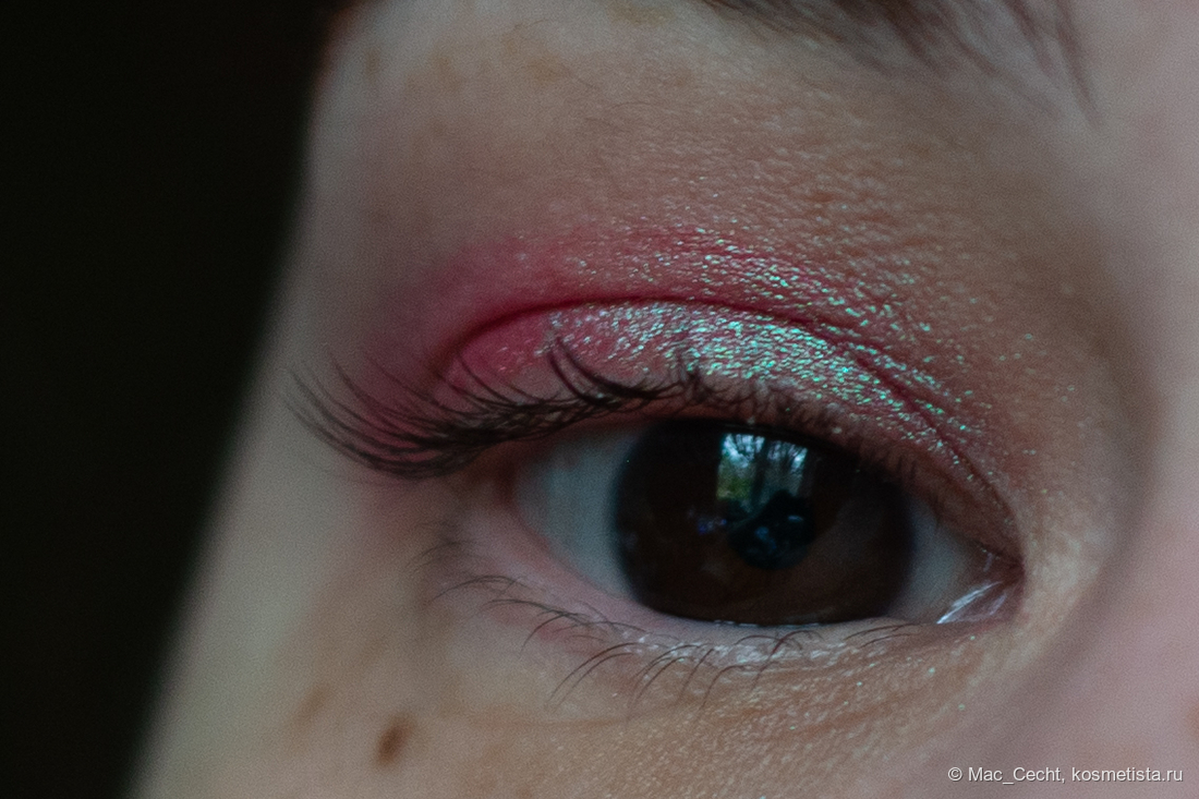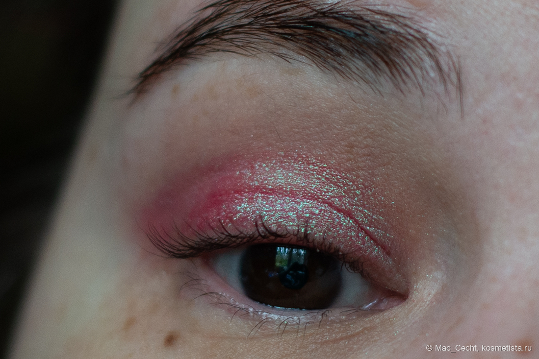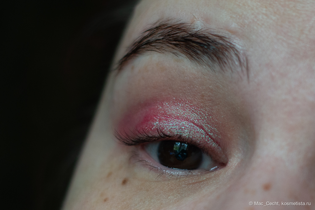 Есть только один нюанс: т.к. это дуохром, в самой складке и на выпуклой части века цвет выглядит по-разному)) Первые разы мне казалось, что это скатывание, но нет, покрытие было целым.