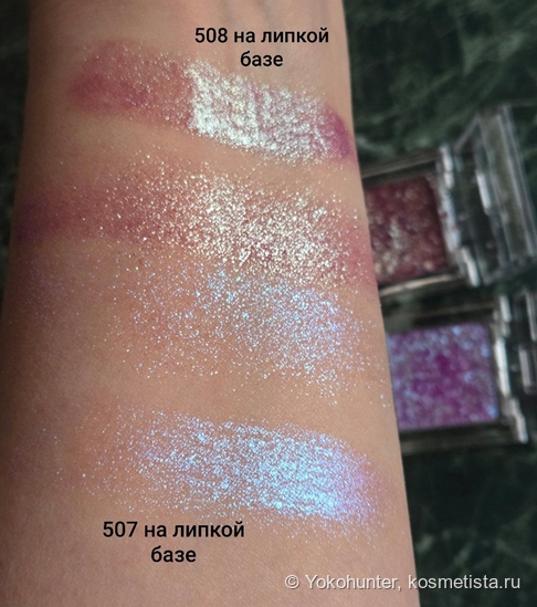 Так же тени очень жирные и подвижные. Вторым их капризом может стать скатывание. Но прилипают к веку они как боженька, а если растереть их пальцем заполируются и будут сумашедше сиять.