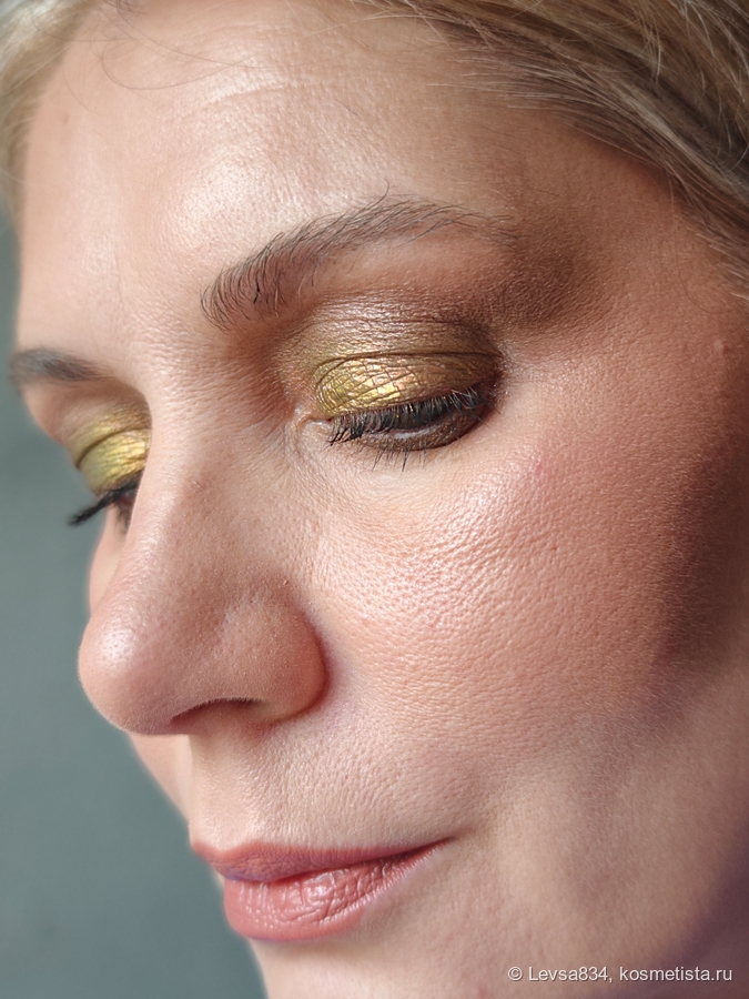 Поэтому пост есть, но он небольшой, не про какую-то целую палетку, полную дуохромов, а про скромненькую монетку теней с довольно уютным и тихим переливом из золотисто-оранжевого в зеленоватый и даже персиковый. Целый мульт хром даже, прекрасный и удивительно простой в работе.
