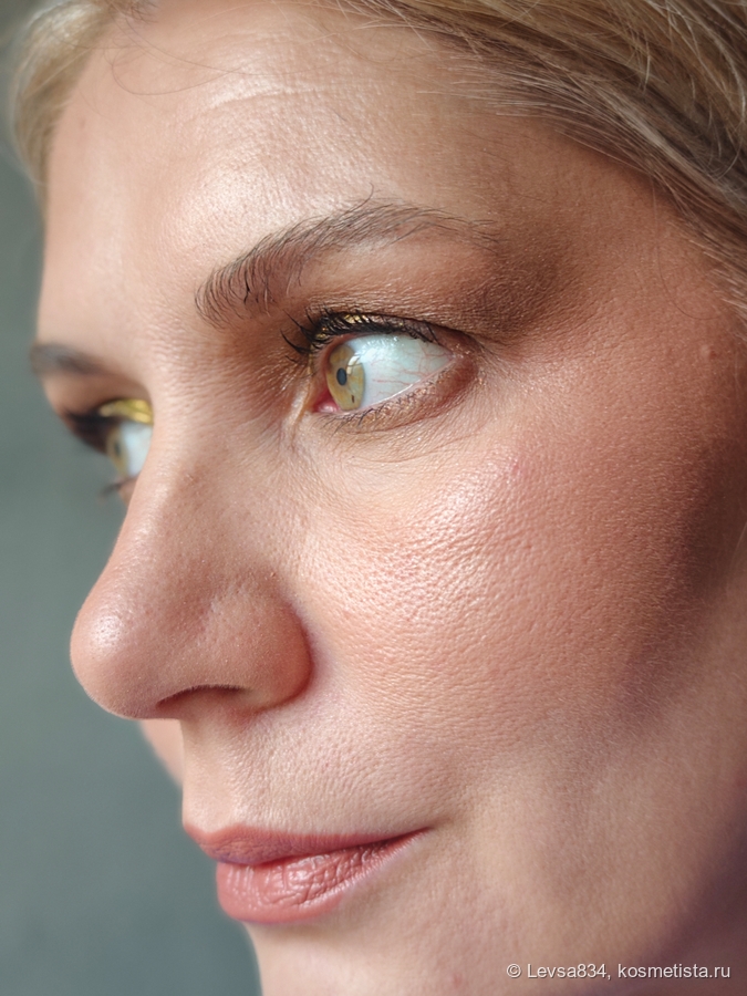 Два движения пальцем и макияж готов. Тушь, немножко того, сего, и я прекрасна и не могу оторвать взгляд от отражения. На глазах, благодаря их объёмной форме, оттенок зажигается игрой вспышек на гладком поле, меняющем цвет при каждом повороте головы.