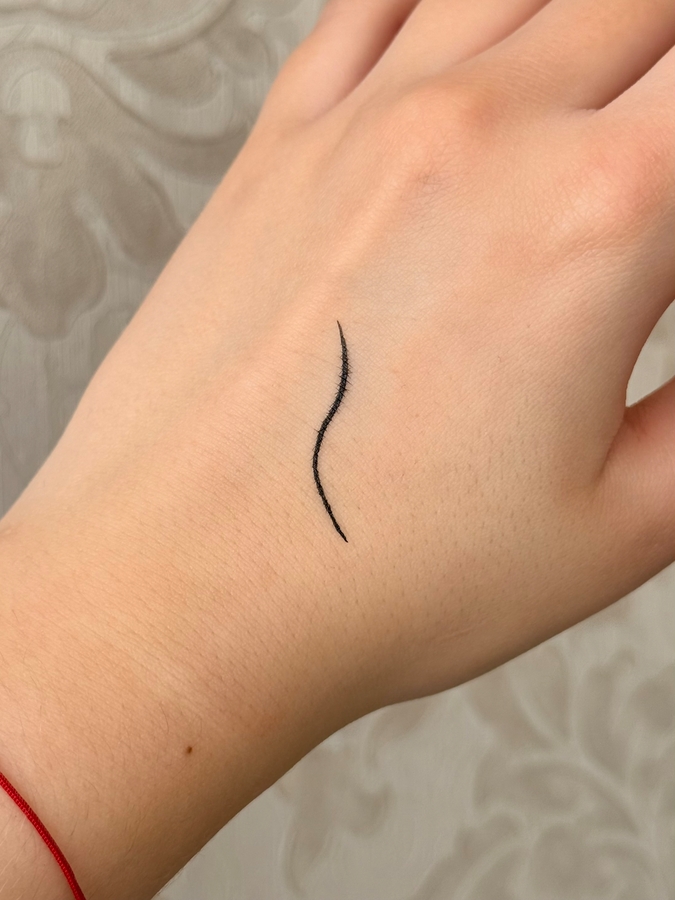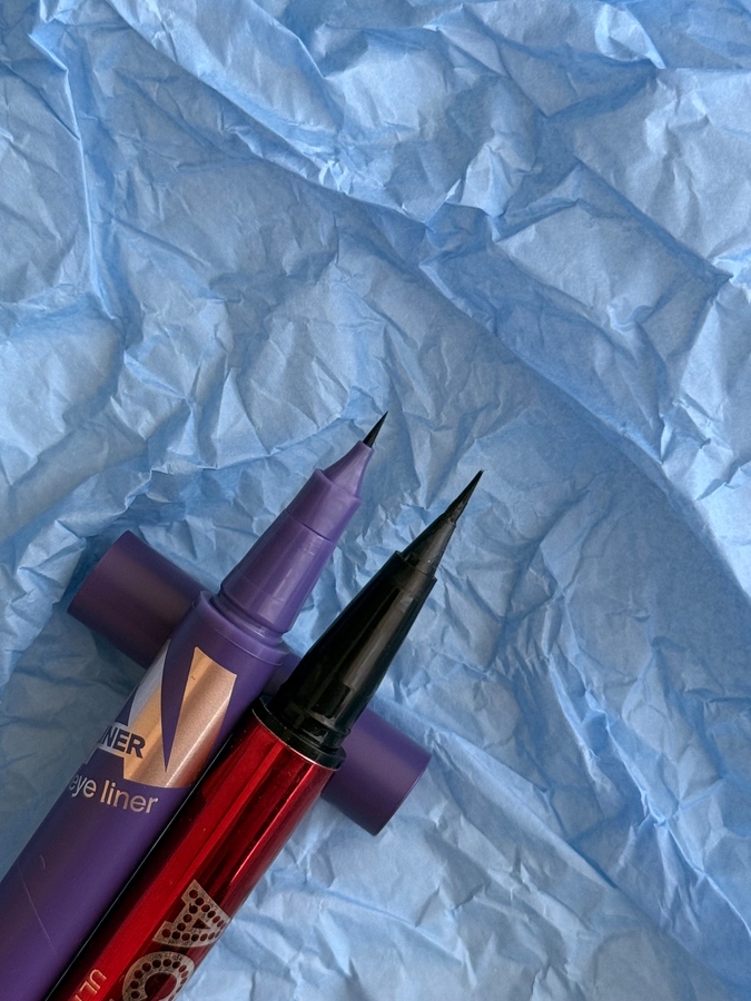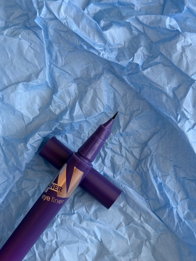 Дизайн упаковки аналогичен туши. По размеру она тоже небольшая и достаточно тонкая. Кончик фетровый, тонкий и маленький. Первая мысль была «как же этим рисовать стрелки». Но, как по мне, такой маленький кончик отлично подходит для прорисовки межреснички или для тонких, длинных стрел.