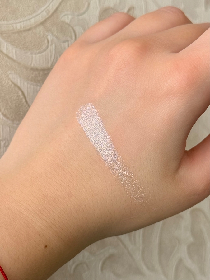 Оттенок 01 «Теплое белое сияние» — белоснежный холодный оттенок. Я в нем даже не вижу теплинки и близко, несмотря на название. Цветная подложка у него отсуствует, в основном в составе только белые и серебристые блестки.