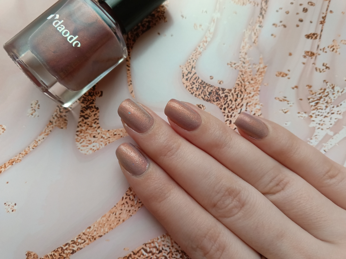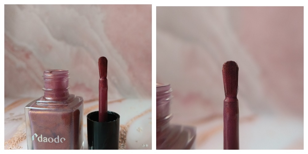 Внешне все обычное. Лаки Daodo приезжают в картонных коробочках. Флакон самый простой, колпачок не съёмный. Объём лака 12 мл. Кисти хорошие, аккуратные, плоские с округлым срезом.