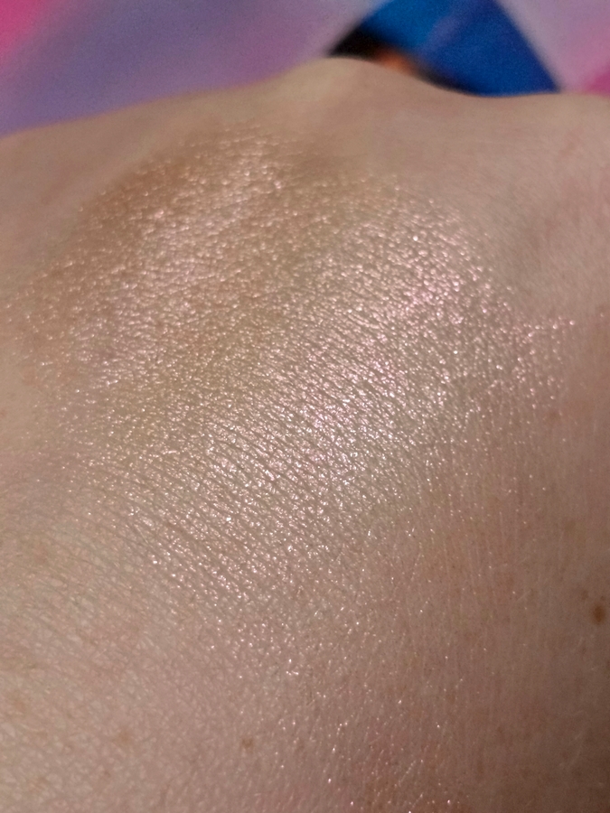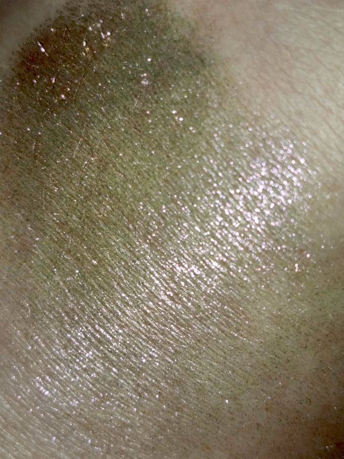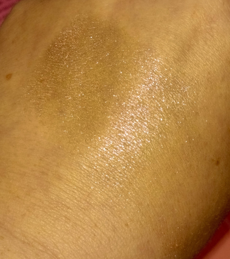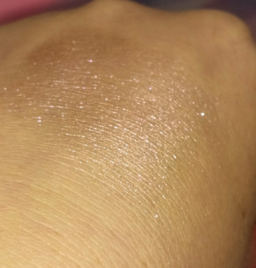 Данный пигмент, ка ки Лимони, не имеет цветовой базы, поэтому иногда веко с ним может выглядеть голым при опредленном ракурсе. вот посомтрите как он слился с рукой при теплом искусственном освещении:
