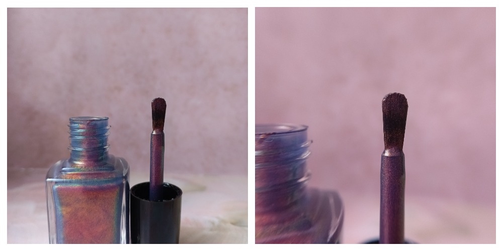 В зависимости от освещения лак может быть и бронзовым и лиловым. Кстати тут кроется еще один момент. Когда лак только наносишь на ногти, он светлый. И я например не заметила несколько огрехов у кутикулы. А когда вышла на улицу, и лак потемнел, огрехи тоже стали ярче и лак стал выглядеть менее аккуратным.