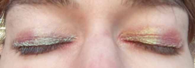 На глазах смотрится симпатично. К концу дня немного пропадает оттенок в складке века, но в целом ведёт себя достойно.