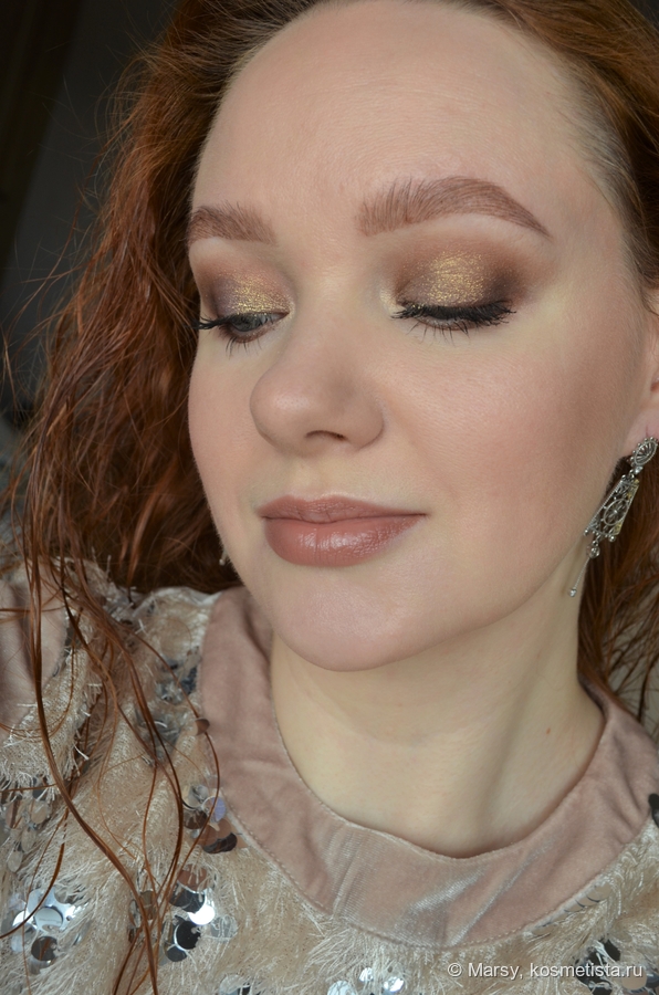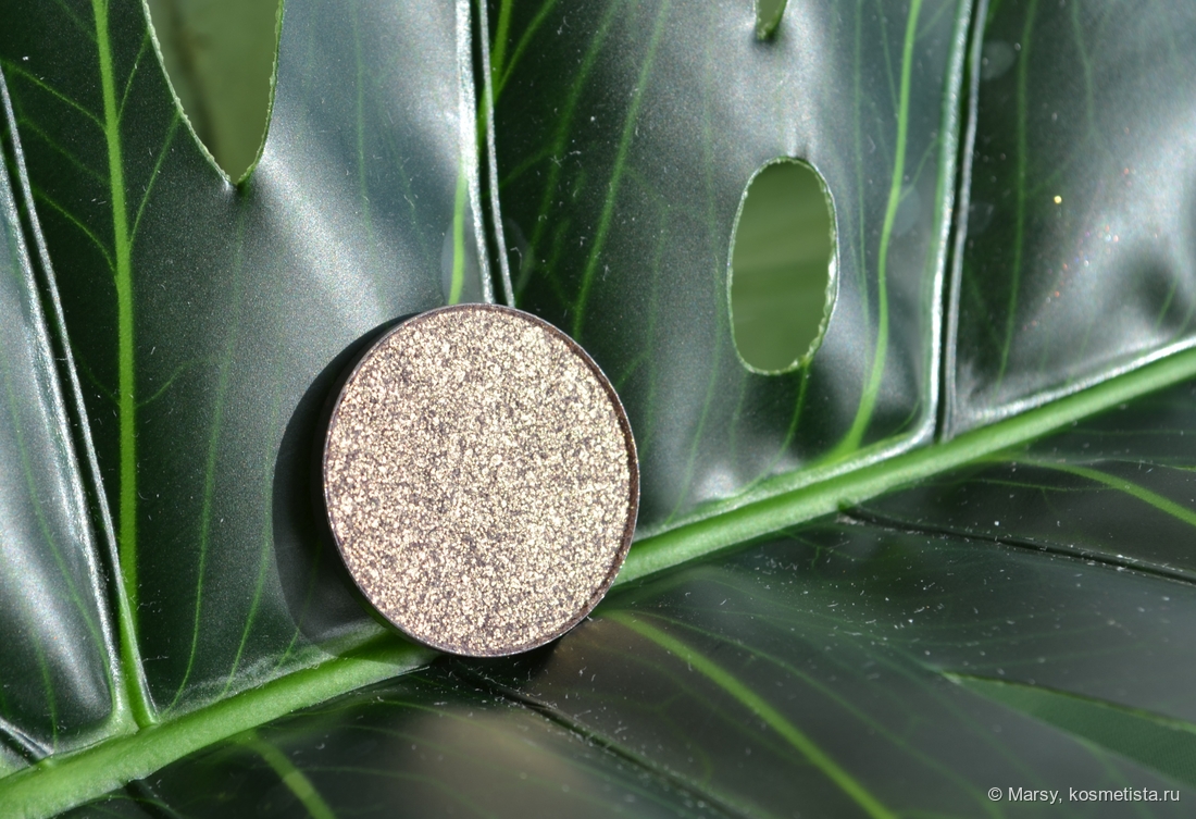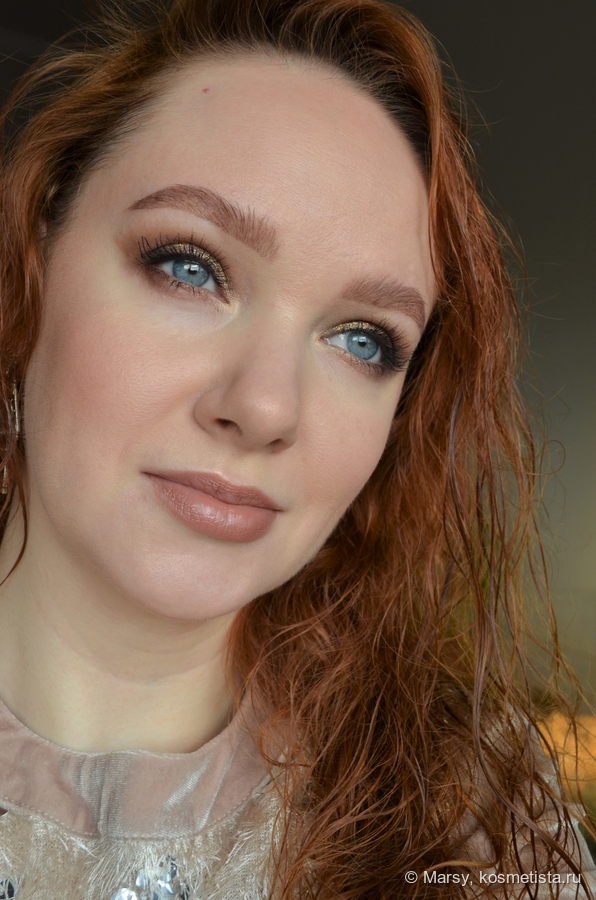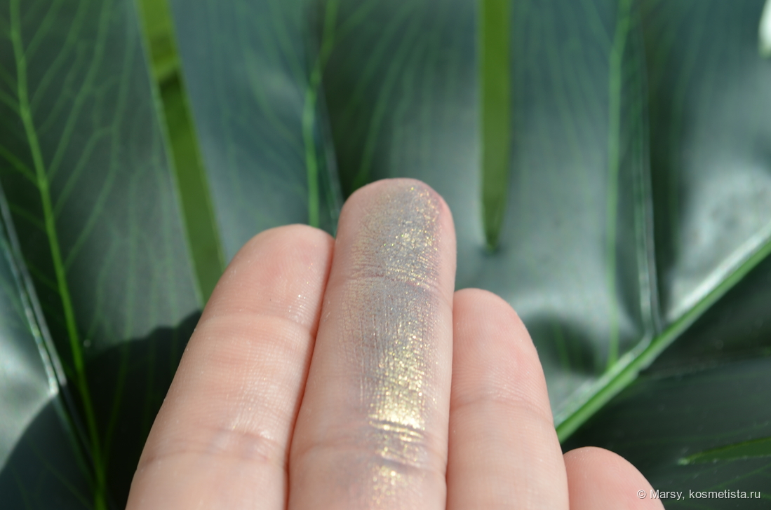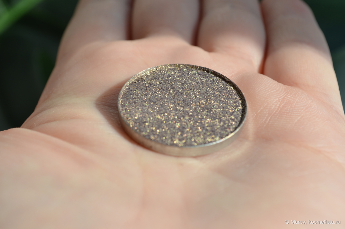 Оттенок потрясающий. Это состаренное золото с переливом плесневелой зеленцы и фиолетового. Хотя, я бы сказала, что у оттенка фиолетовая база, она видна при определенном угле. Выглядит невероятно интересно и по — вечернему.
