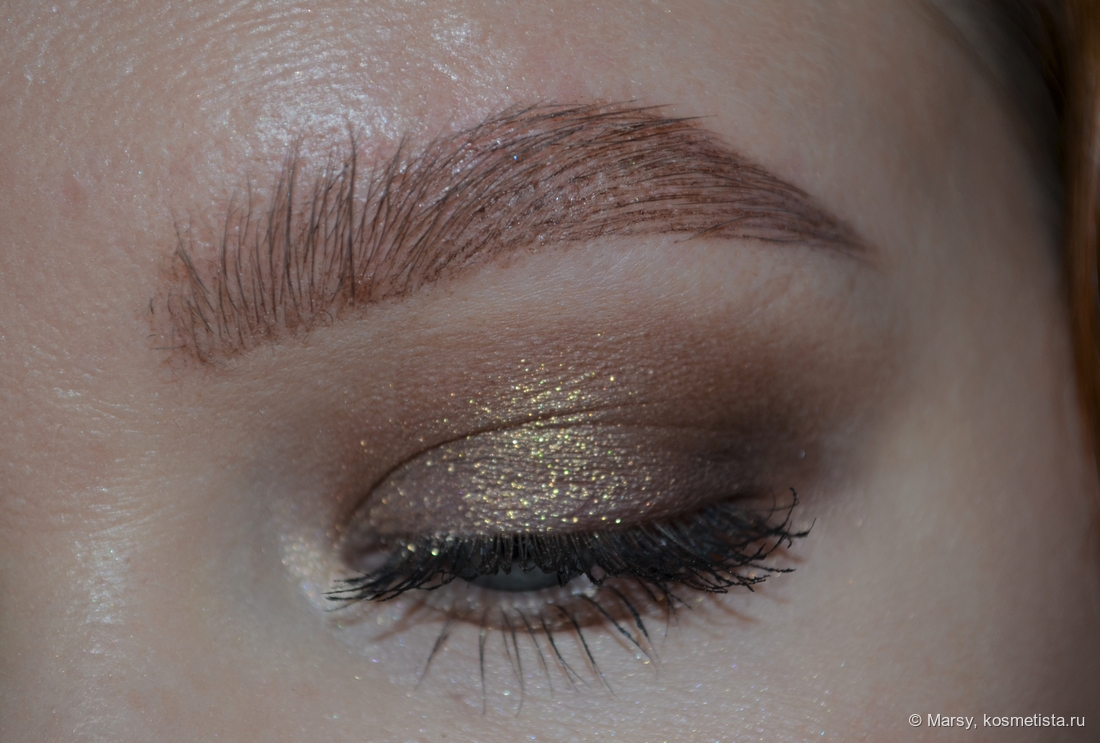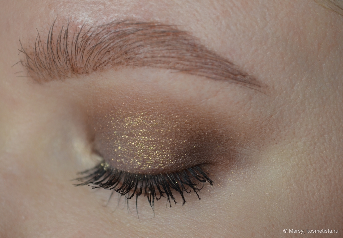 По финишу — это металлик, плотный и яркий. Можно нанести и влажным способом, но тогда ненадолго может кукожить веко, позже отпускает.