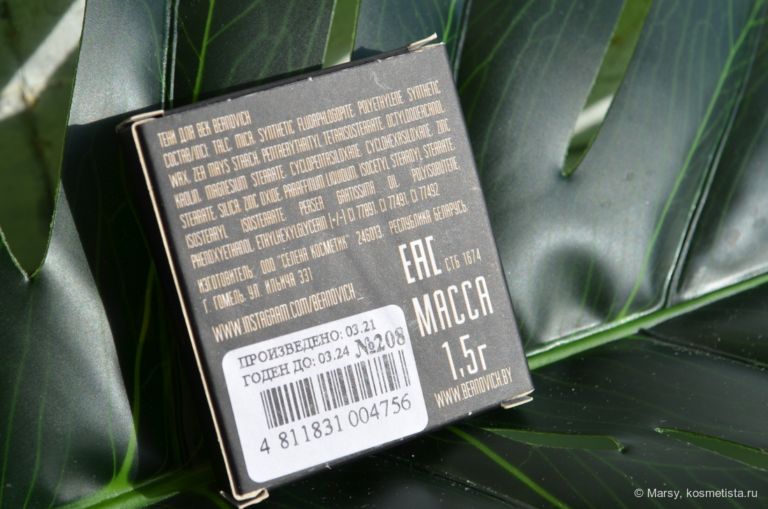 Текстура плотная, маслянистая, жирненькая при наборе. Набирается хлопьями, которые нужно прям растирать по веку. Отлично набирается и наносится кистями.