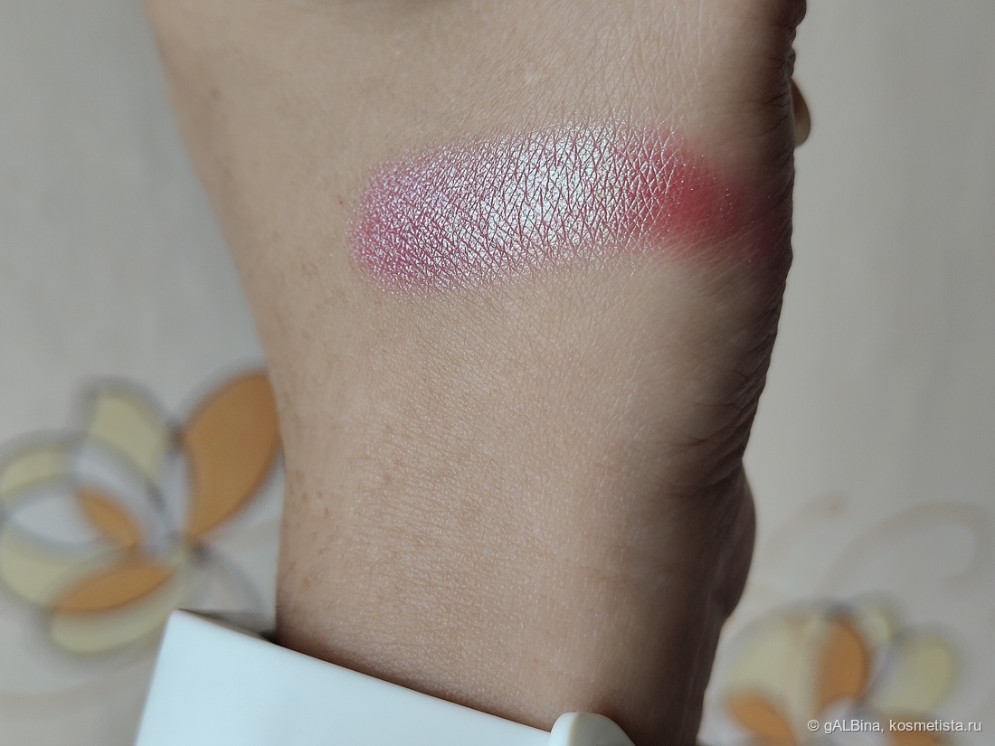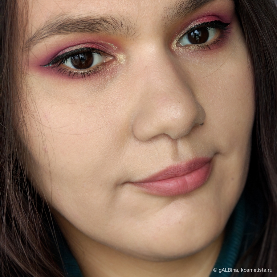 Оттенок красивый. По описанию бирюзовый блик с преломлением в мадженту. Для меня это яркий персиково-розовый с голубым бликом. Если честно, первые свотчи меня немного разочаровали. Но когда сделала макияж, моё мнение изменилось.