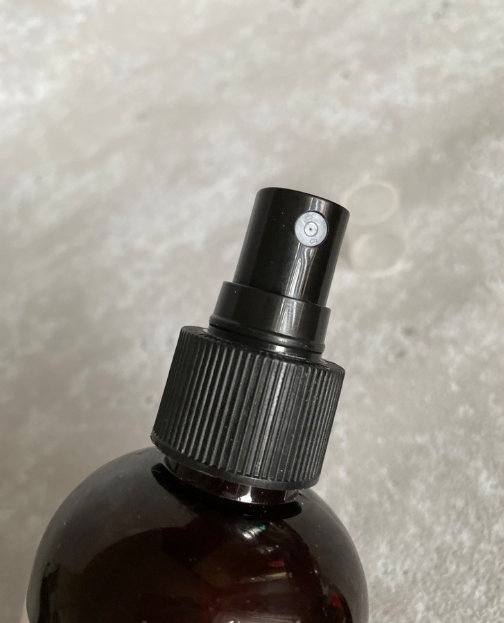 Пилинг продаётся в тёмном пластиковом флаконе с распылителем. Распылитель удобен для тела, но для кожи головы — не лучший вариант, потому что много средства попадает на волосы.