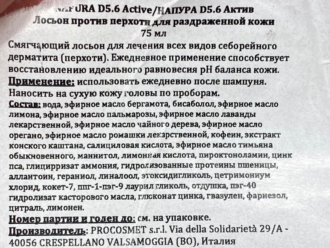 NAPURA Лосьон против перхоти для раздражённой кожи головы D5.6 Active