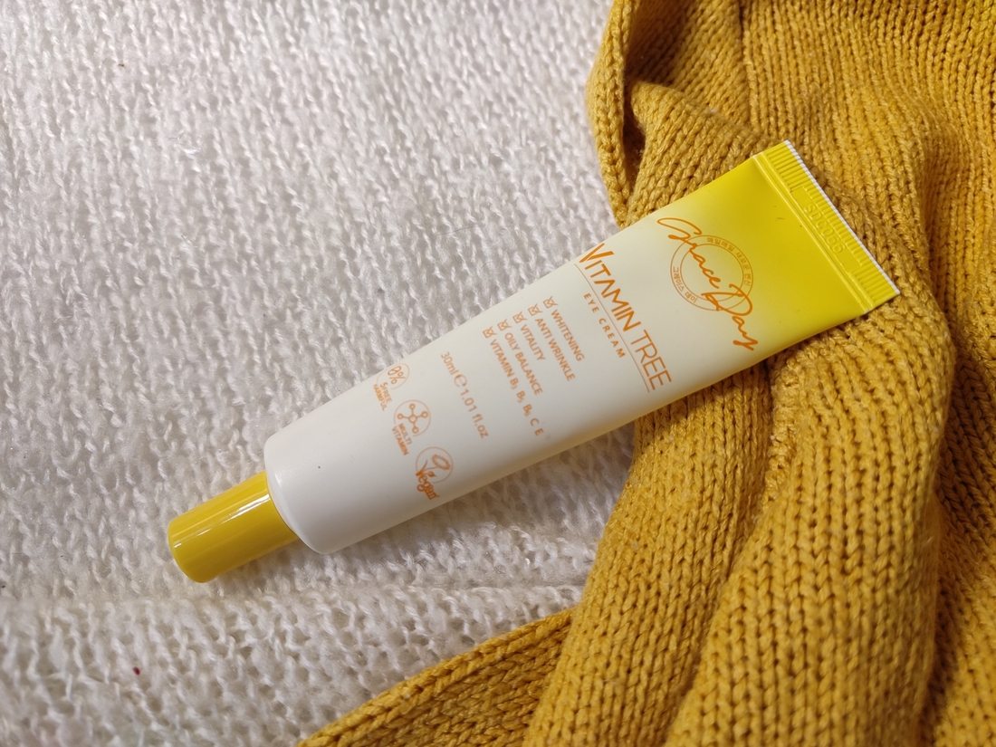 Крем Vitamin Tree eye cream отGrace Day приглянулся мне своими обещаниями защищать кожу от ультрафиолета и не утяжелять ее. Не знаю на счёт первого, но второе обещание он выполняет с трудом. Увлажняет, однако впитывается долго, и все это время ощущается на глазах. Благодаря небольшой липкости на нём хорошо сидят тени)