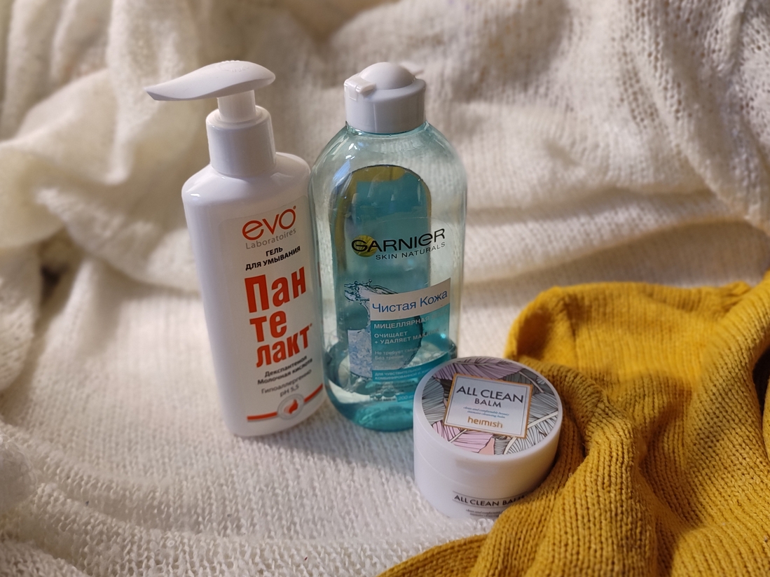 Смываю макияж мицеллярной водой или гидрофильным бальзамом, если настроение было накраситься.