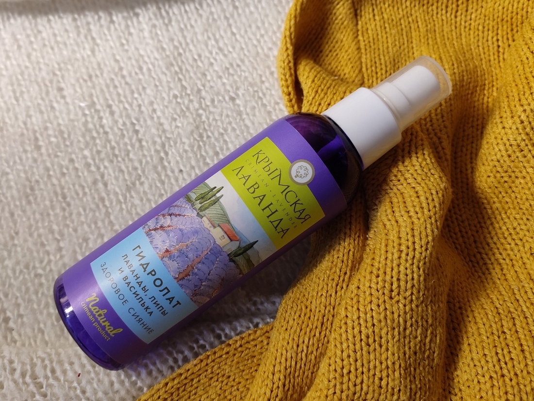 Гидролат Крымская лаванда от «Мануфактуры Дом Природы». У производителя есть целая линейка с гидролатами лаванды. Мой — лаванда, липа и василек. Имеет специфический запах какой-то скошенной очень горькой травы. Не каждому такое понравится. Хорошо успокаивает, увлажняет и тонизирует кожу. Производитель обещал ещё восстановление водного баланса. Будем в это верить😄