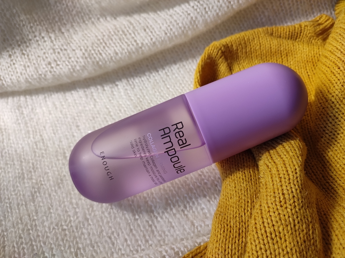 Следующей ступенькой идёт коллагеновая сыворотка Enough Real Ampoule. Она так же, как и когда-то коллагеновый крем, посмотрела на меня, я посмотрела на неё — и мы ушли из магазина вместе. Эта большая пилюля в 200 мл реально меня удивила.
