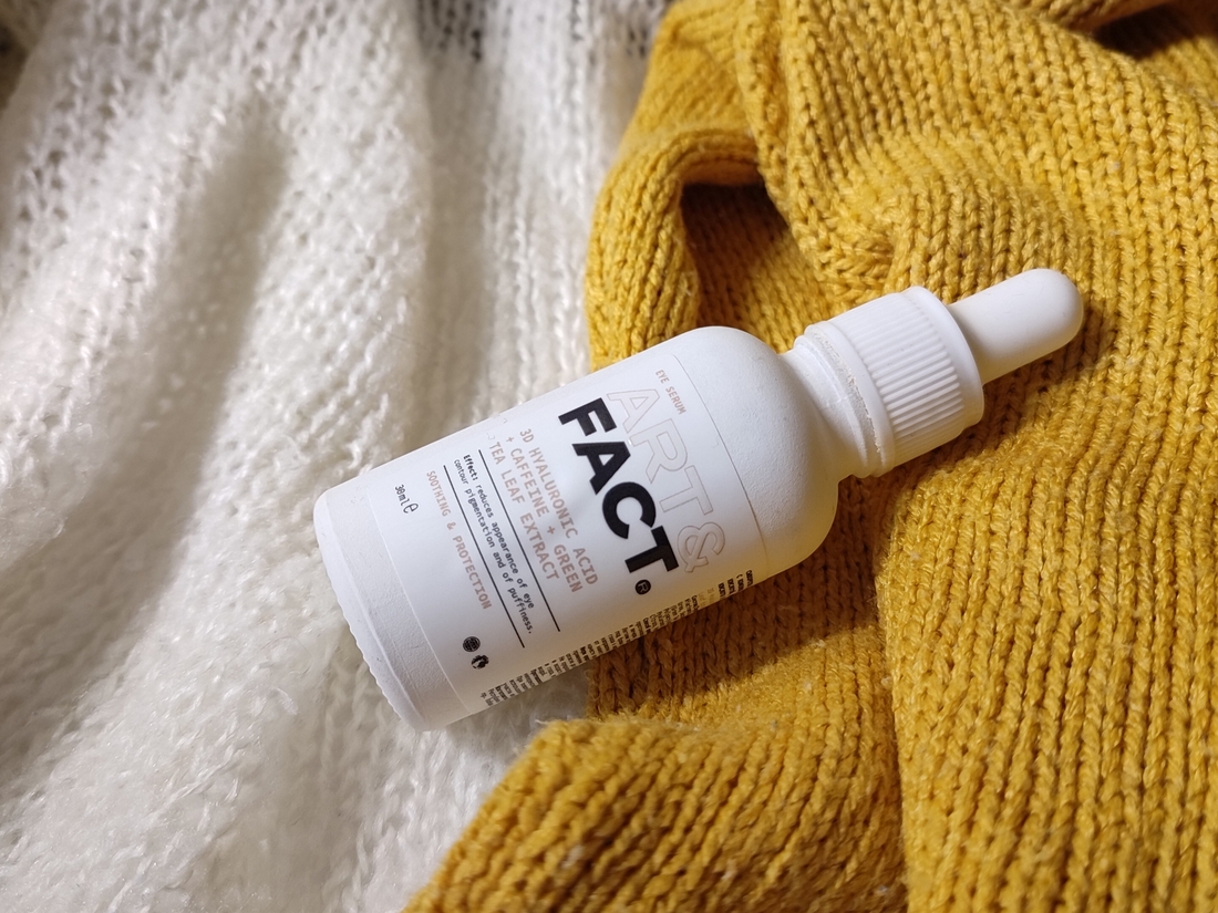 Под глаза и по нижнему веку использую сыворотку для области вокруг глаз с кофеином от Art &Fact. Она слегка осветляет мои тёмные круги под глазами и неплохо тонизирует сосуды.