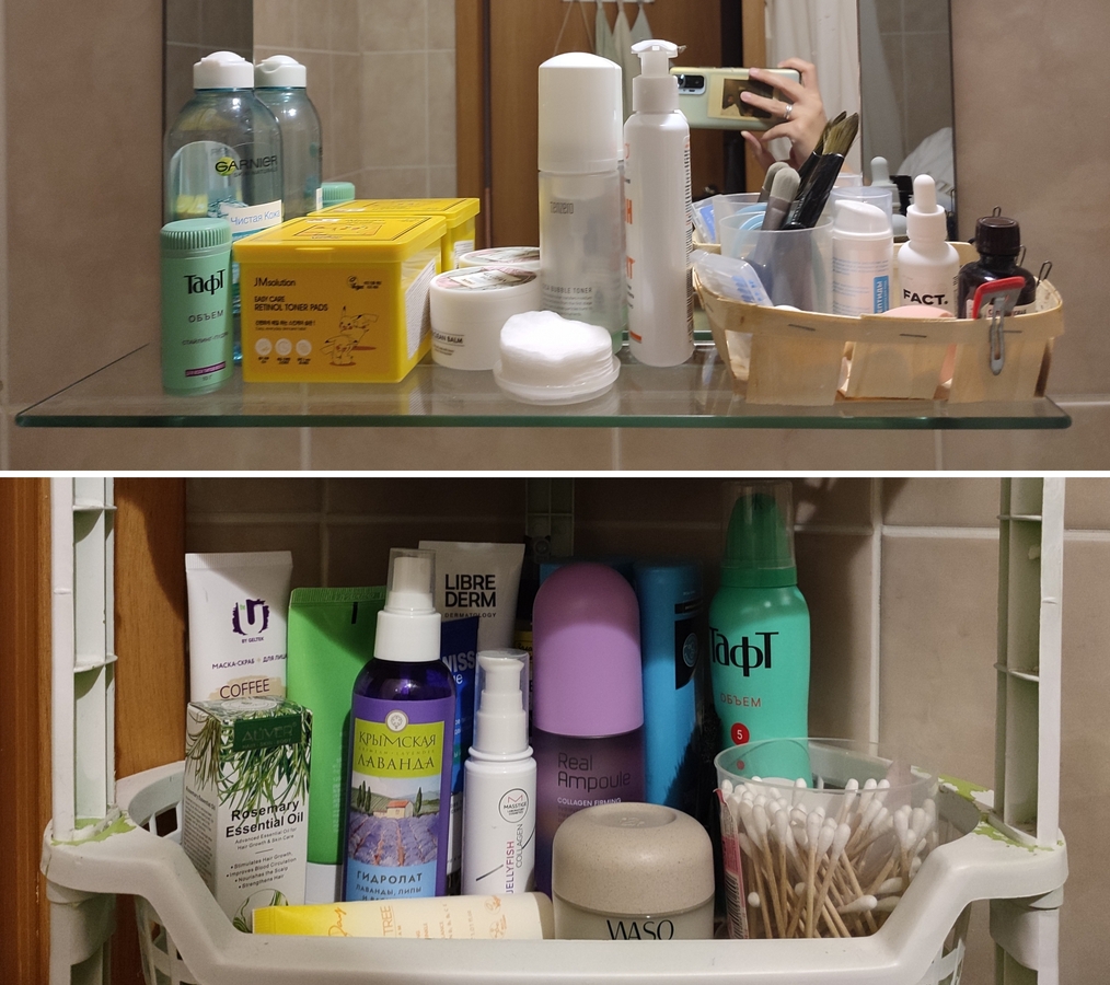 Приветствую, дорогие читатели косметисты! Я тут скрестила пальчики и набралась смелости написать про свою уходовую полочку. Начну с того, что раньше я спокойно обходилась «джентльменским» набором», а теперь офигеваю от того, как забита моя полка 😅