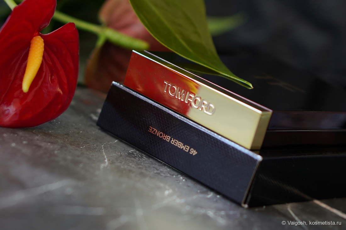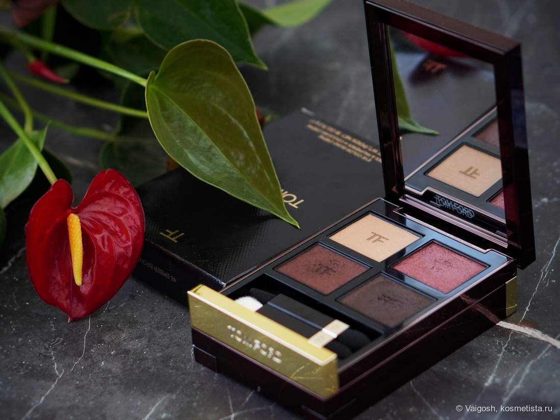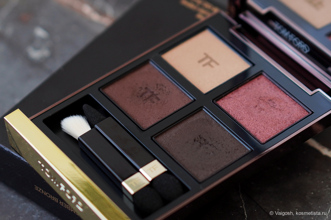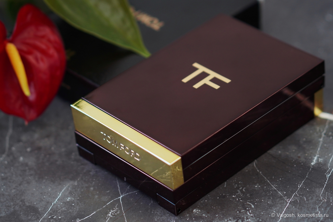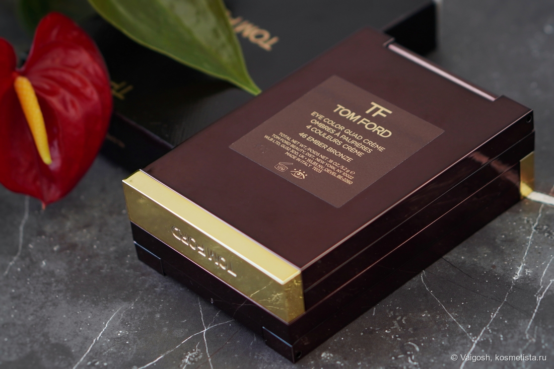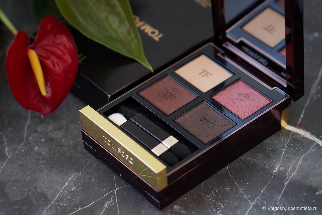 Упаковки Форда я все ещё люблю, несмотря на лого на крышке, маркость и царапучесть, единственное, что огорчает — кривовато сидящая наклейка на попе, которая, к слову, гласит, что теней у нас тут 5,2 г, и изготовлены они в Италии.