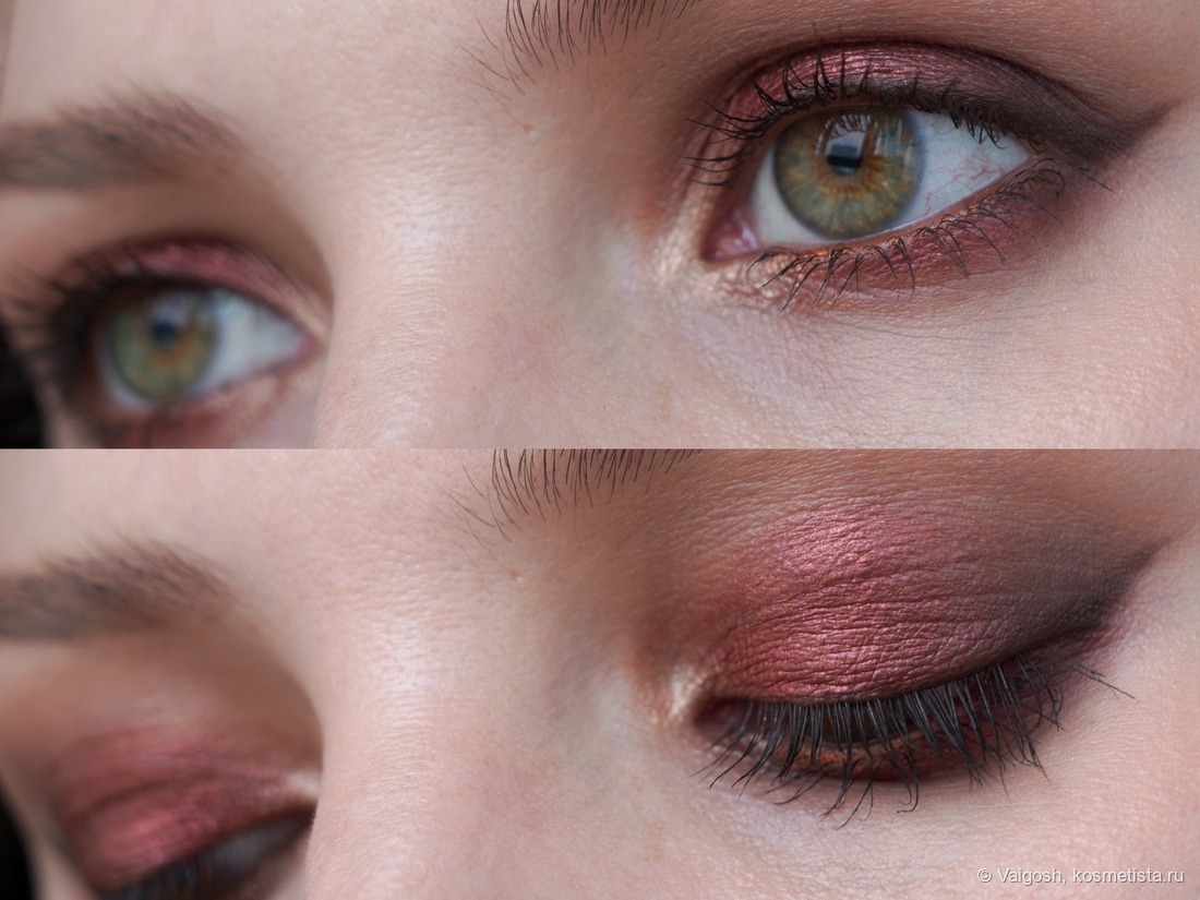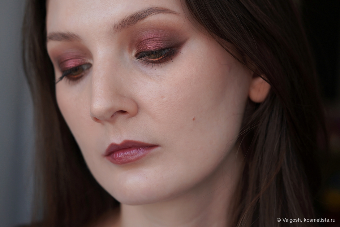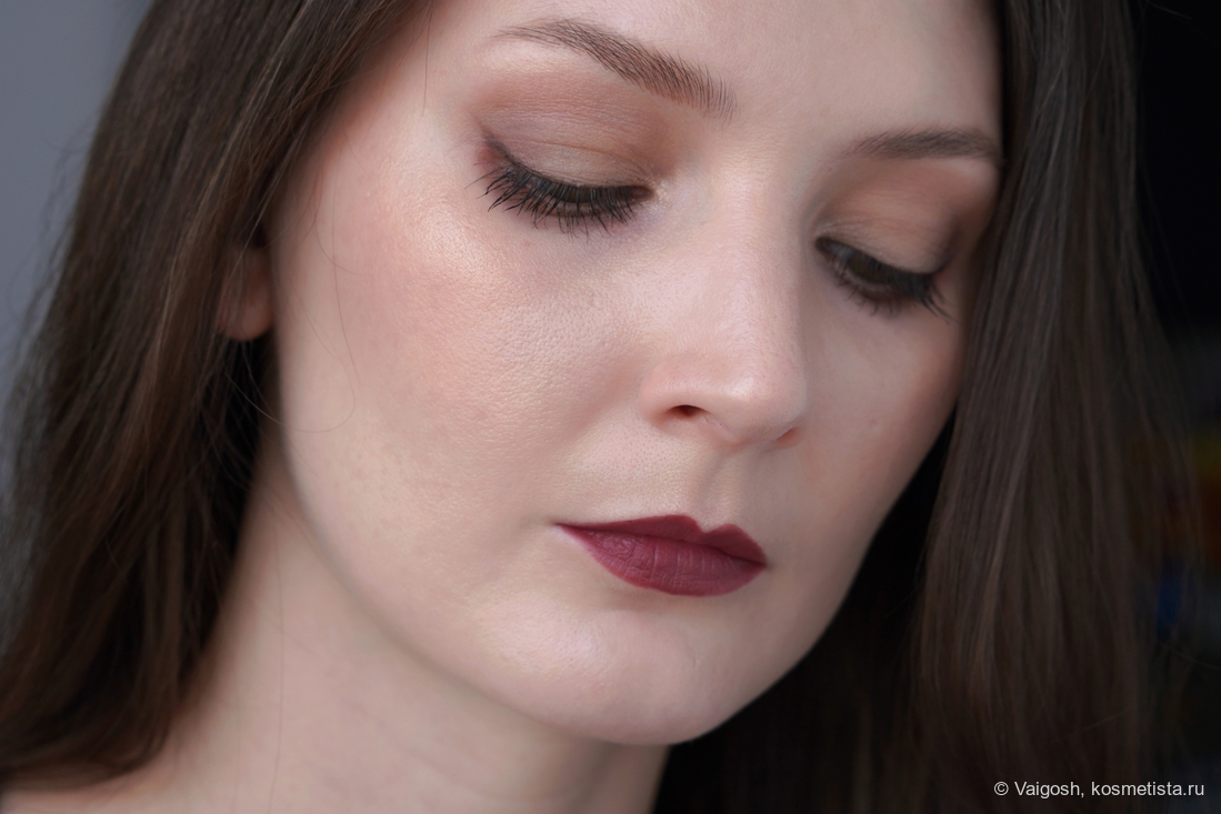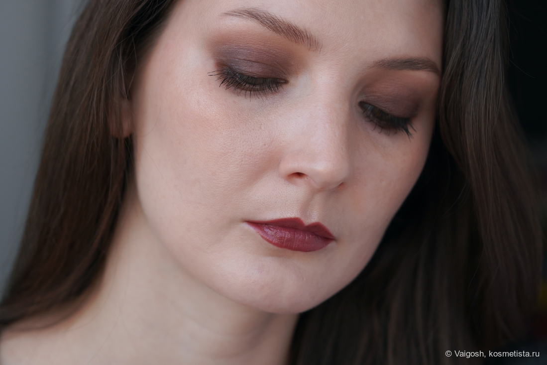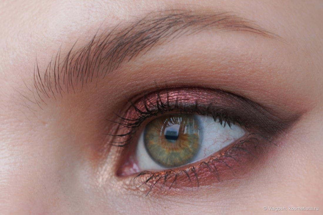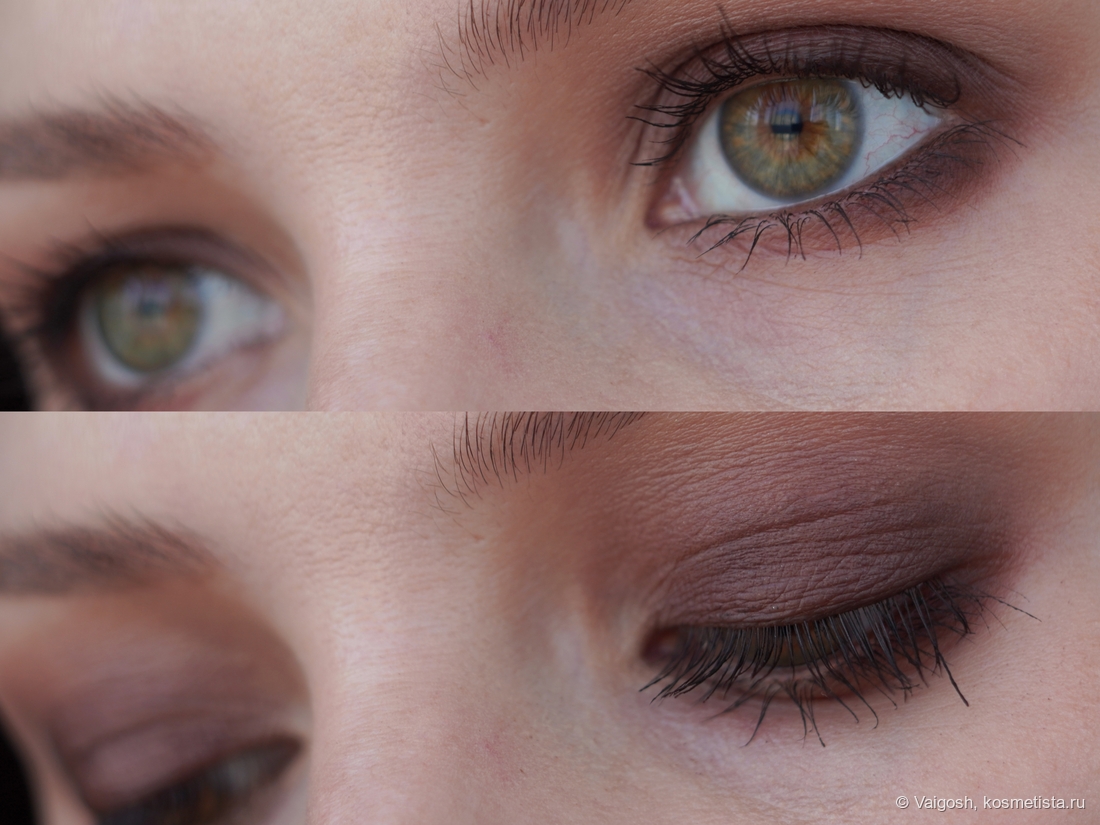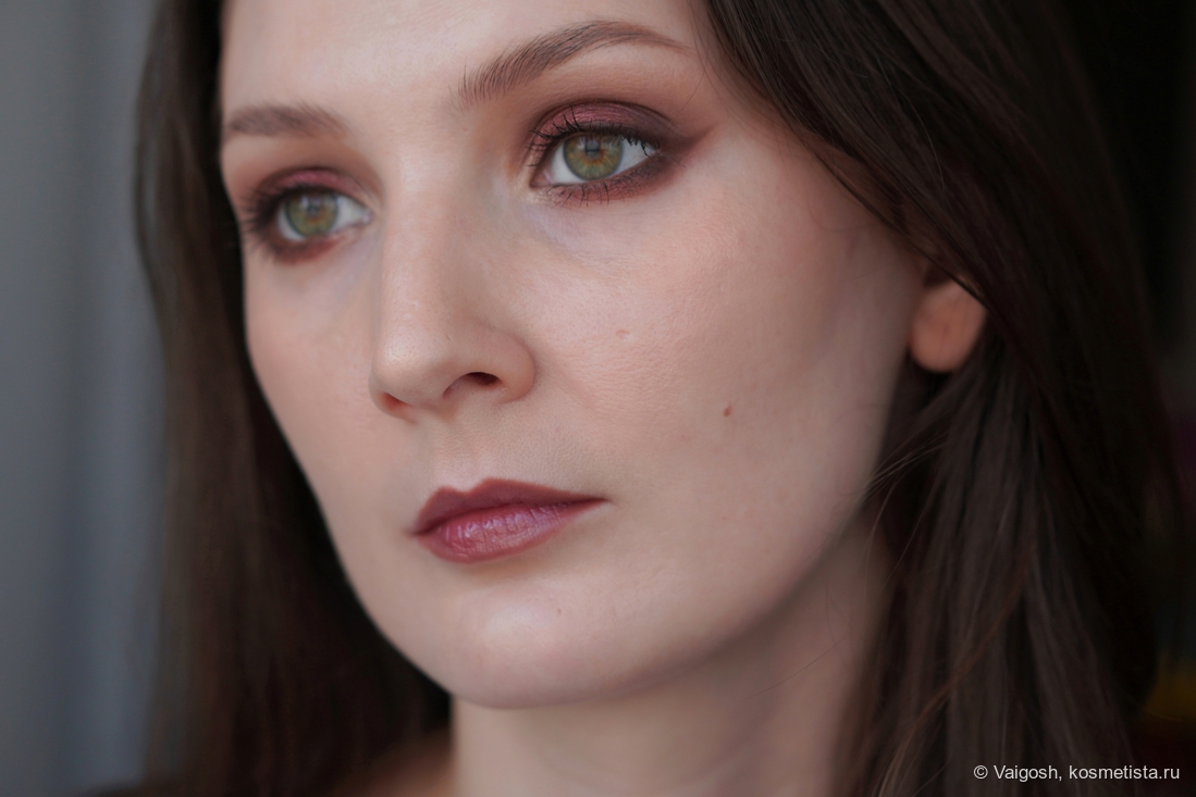 Как выяснилось, у темно-коричневого есть одна особенность, которую не заметит большинство, и которая подвыбесит тех, кто снимает макияжи: время от времени я замечаю на макро некую неравномерность и как будто бы даже залипания, хотя в зеркале и на общих снимках все смотрится вполне окей. Ей-богу, я себе чуть мозг не вывихнула, пытаясь дотушевать невидимые глазу пятна, ориетируясь на картинку в телефоне, и не сказать, что я в этом вопросе прям преуспела.