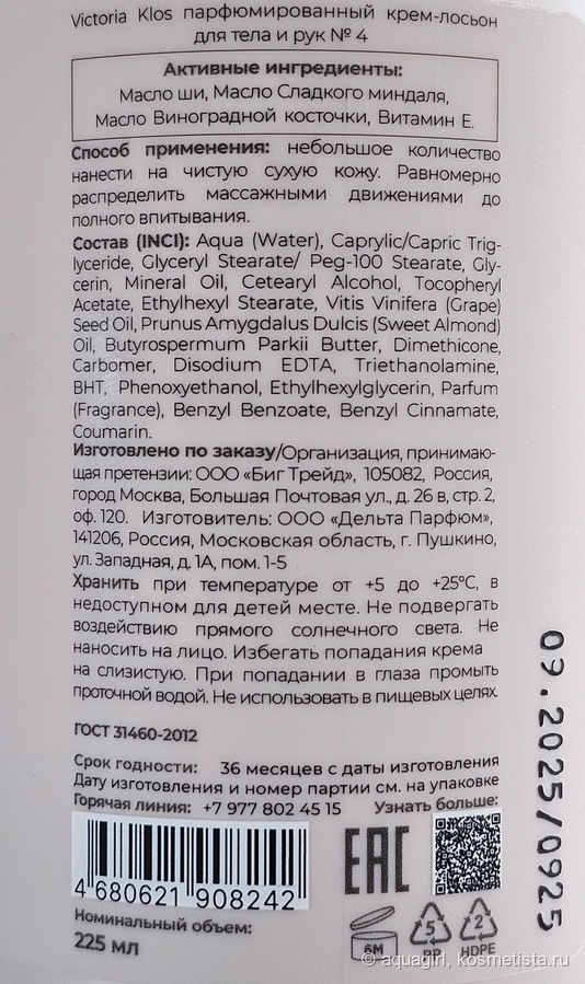 На упаковке находится подробная информация о составе, способе применения и производстве.