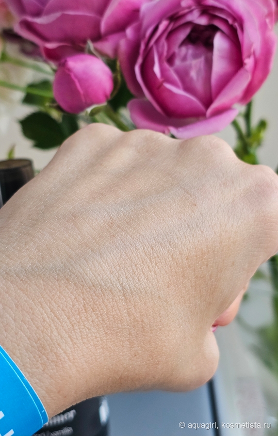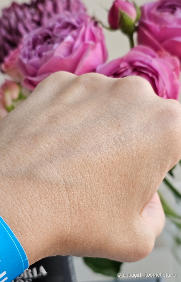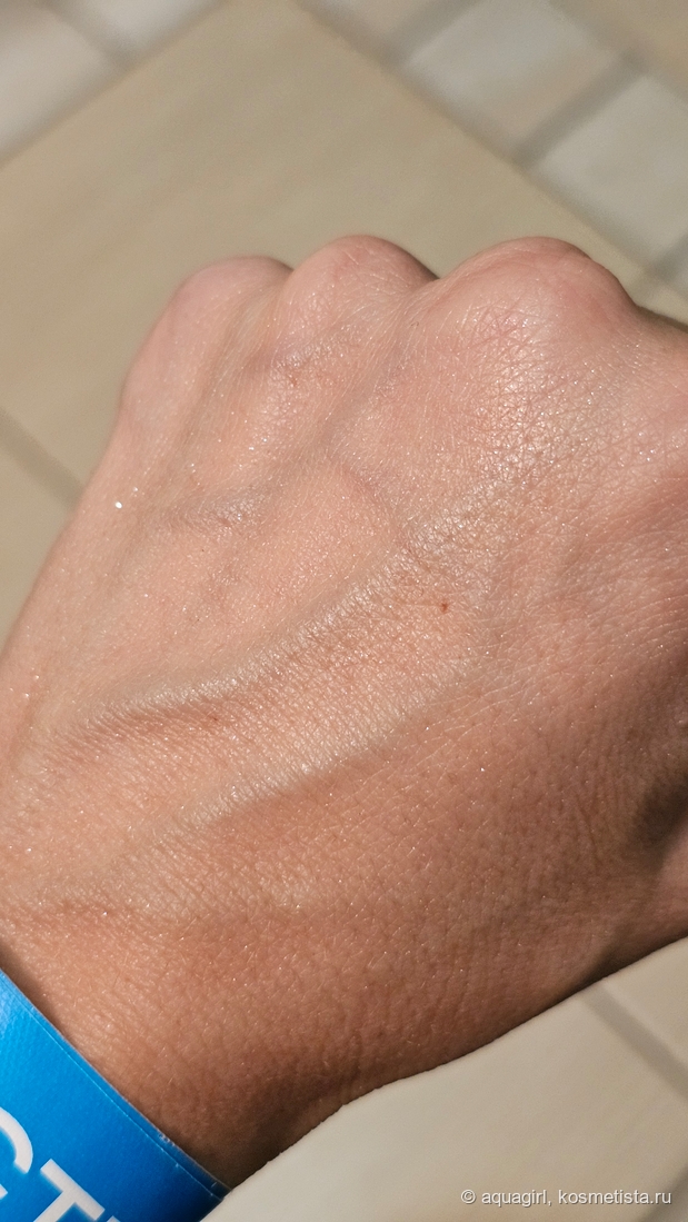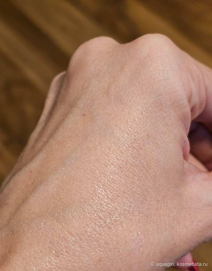 Блёстки в составе очень мелкие. При распределении по телу они практически не заметны, но придают коже лёгкое сияние и сглаживают неровности.