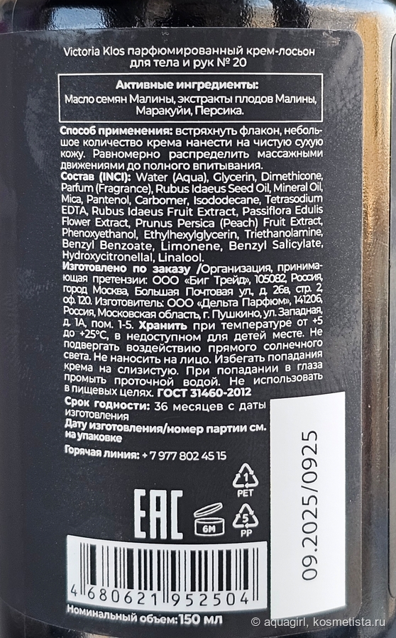 Объём продукта 150 мл, срок годности после вскрытия 6 месяцев, сделано в России.