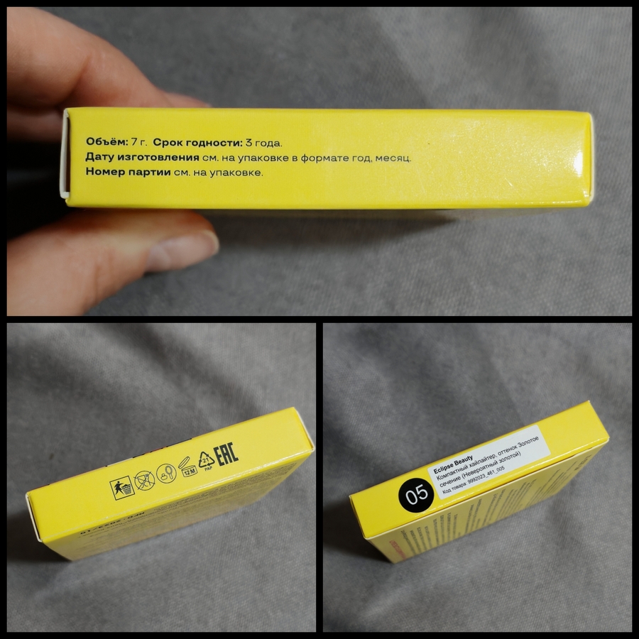 Хайлайтер выпущен в двух оттенках. У меня 05 Золотое сечение Невероятный золотой.