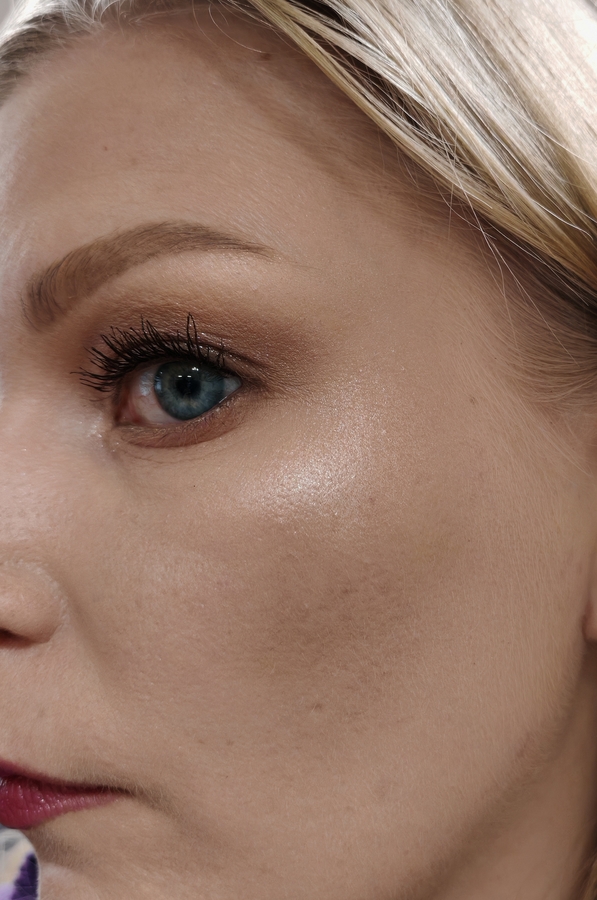 Хайлайтер отлично наслаивается. Можно нанести более деликатно, а можно наслоить до очень яркого сияния, которое видно из космоса.