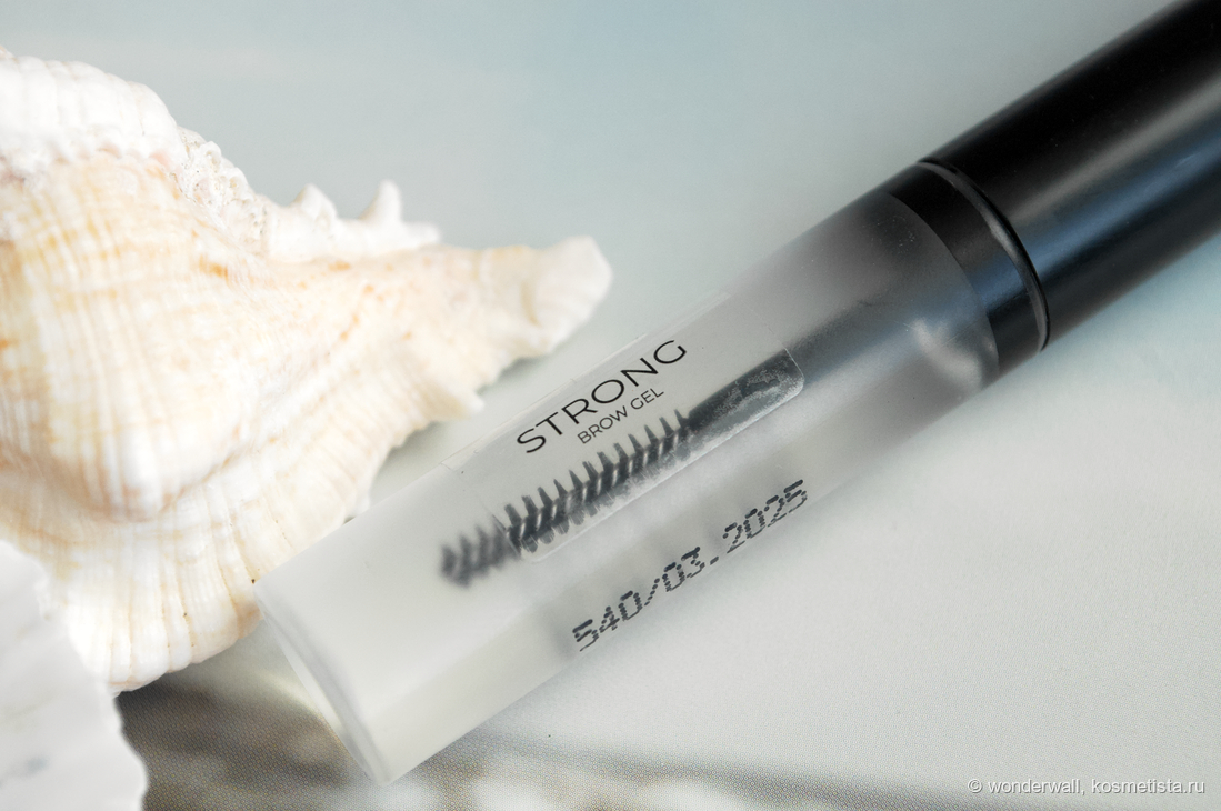 Флакон вытянутой формы и довольно длинный. Обычно гели для бровей находятся в более миниатюрных упаковках.