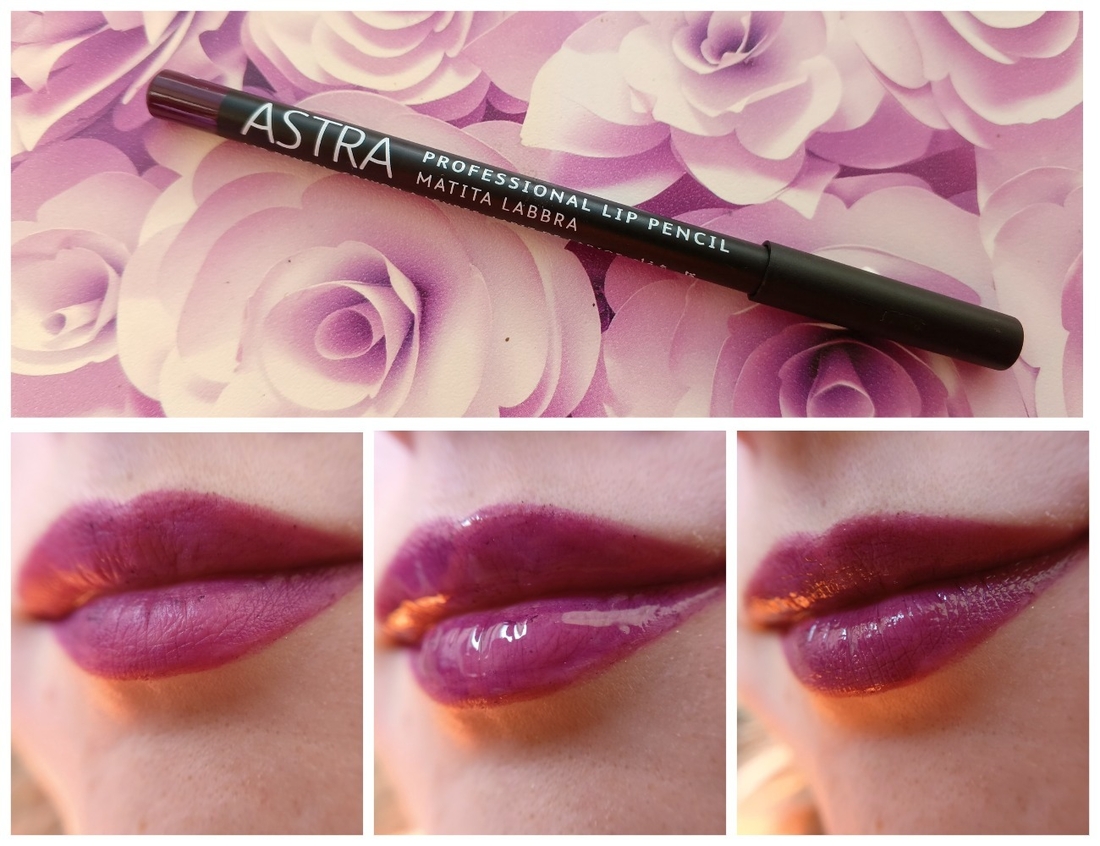 Затем я перешла ко второму эксперименту. У меня есть очень любимая мной помада — Dolce & Gabbana Miss Sicily №320 Onofria, я это называю «остатки былой роскоши». Прелесть этой помады в редком, холодном, серо-фиолетовом оттенке. Но так как помада бальзамная, полупрозрачная, добиться яркого цвета с ней невозможно. Я решила нанести ее поверх карандаша Astra.