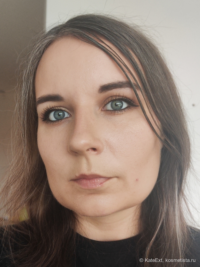 В общем образе на фото кажется, что глаза выглядят воспалёнными, но я вам клянусь — в реальности оно так не смотрелось вообще! Я сделала фотографий тридцать при разном освещении, но камера везде выдаёт взгляд аллергика. Понятия не имею, почему!