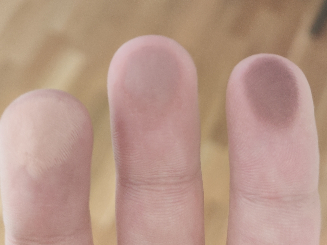Кирпично-розовый. Матовый. На пальцесвотче розовинку прячет, но на веке, как я и говорила, розовый будет, правда, придётся долго, долго, доооооолго наслаивать. В целом безпроблемный: не пылит, тушуется легко (в следствие своей полупрозрачности), был бы отличным оттенком в складку, если бы был различим человеческим зрением.