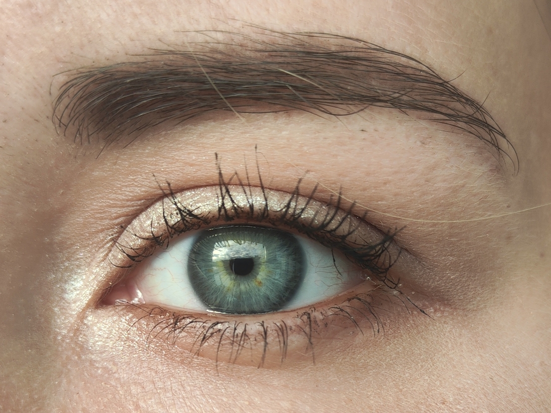 В складке и уголке — самый тёмный коричневый, но в уголке в два слоя, а в складке — очень вуально. На подвижном веке — золото, база закреплена топленым молоком.